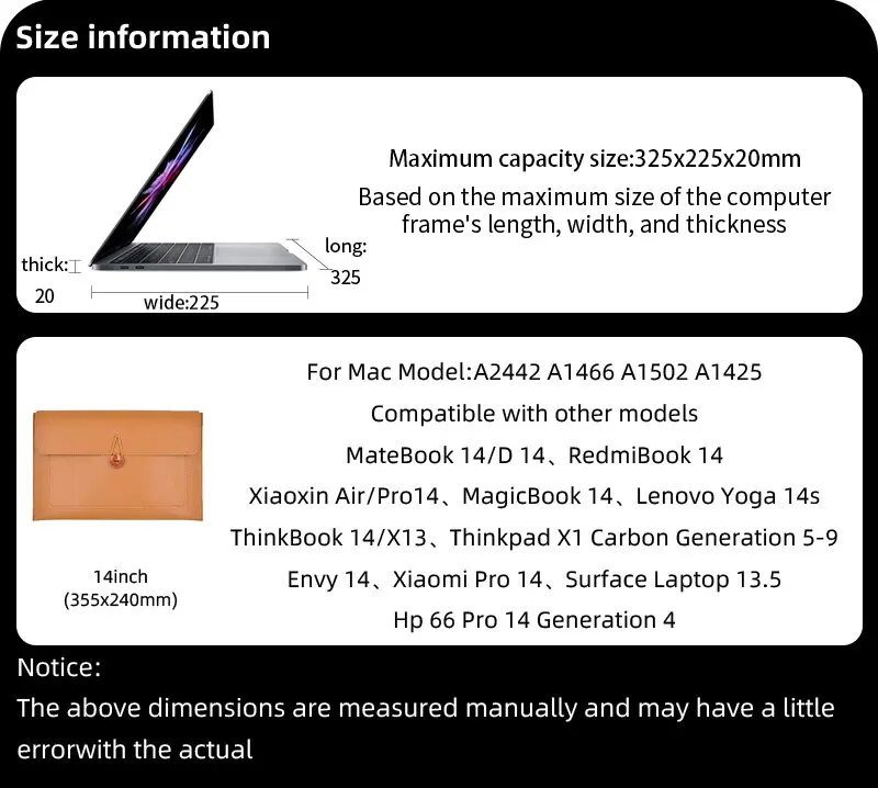 1. Размер не подходит для старых или игровых ноутбуков, только для некоторых Ультратонких ноутбуков. Пожалуйста, обратитесь к списку ниже, чтобы купить!