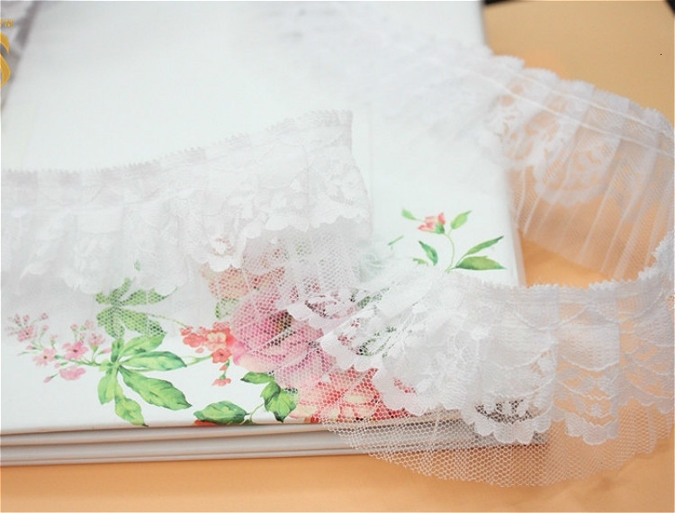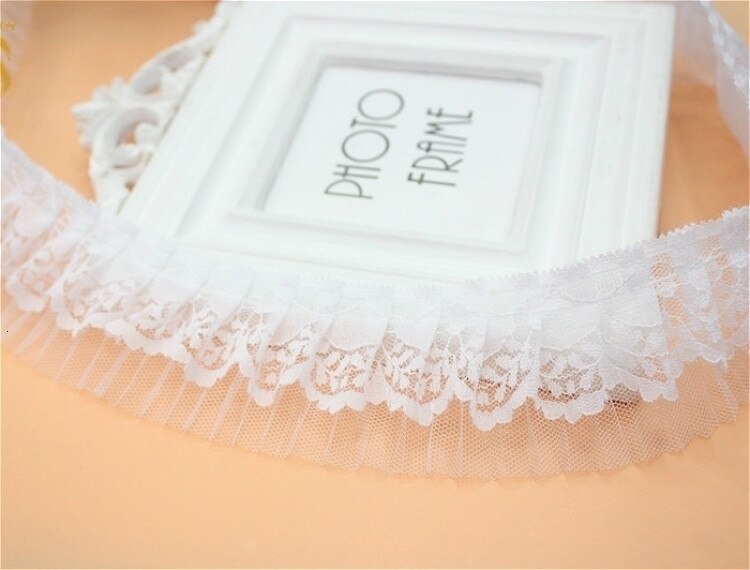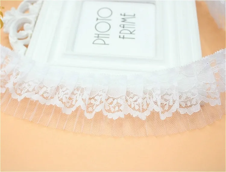 Двухслойная Тюлевая бежевая органная плиссированная хлопковая кружевная лента для одежды, домашний текстиль, ошейник для домашних животных