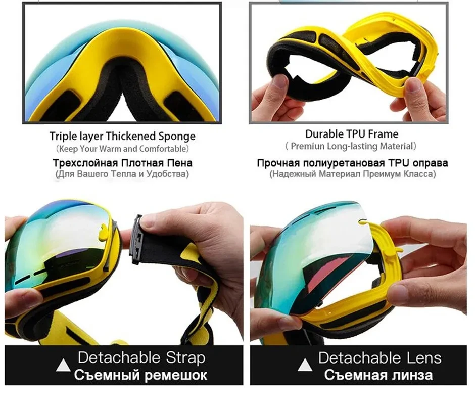 Двухслойные противотуманные лыжные очки для сноуборда