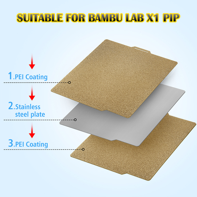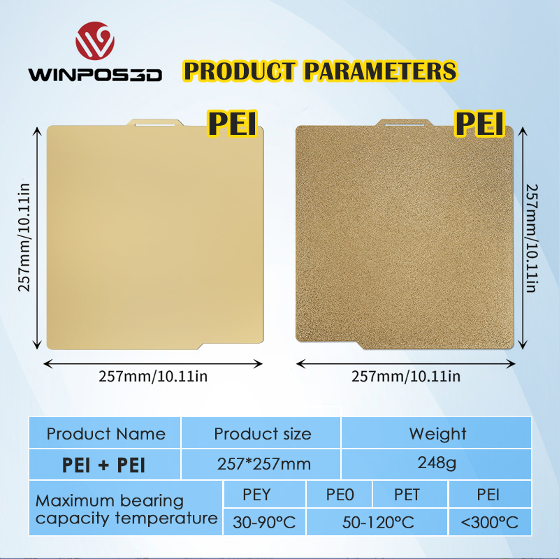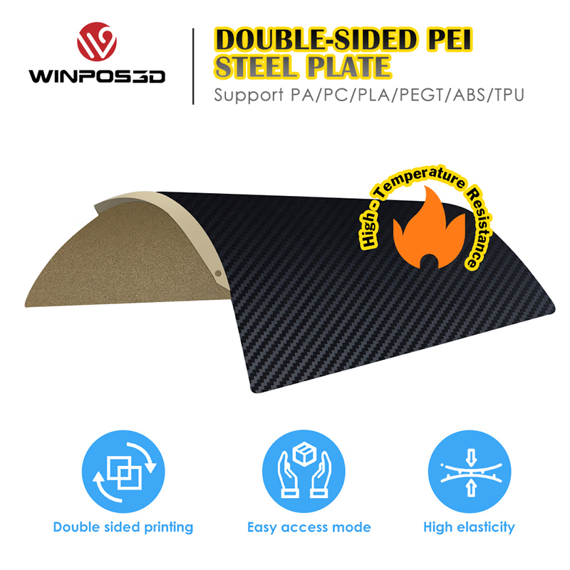 • Двусторонняя текстура PEI + Гладкая пленка PEY лист из пружинной стали * 1 (одна сторона покрыта силовым покрытием PEI, а другая сторона-пленка PEY)