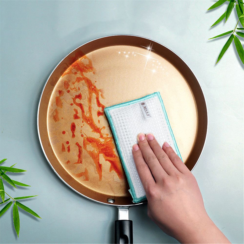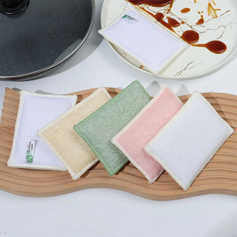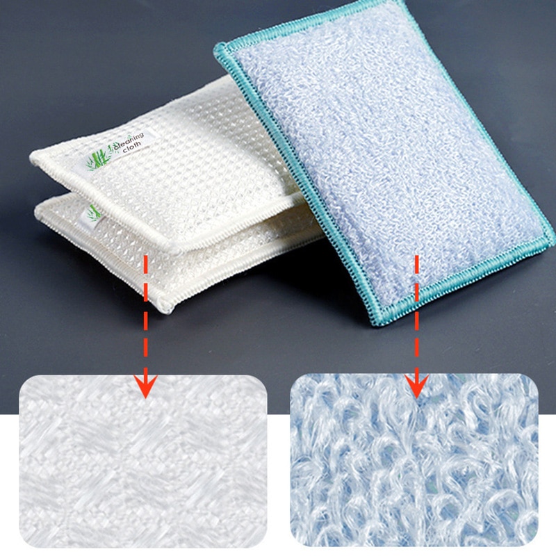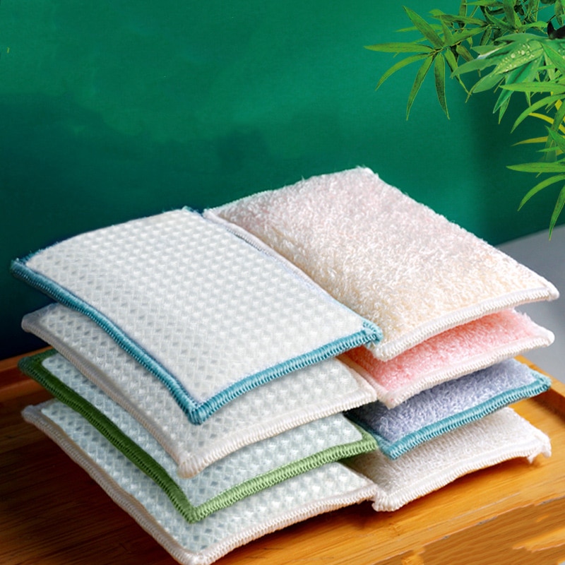 Двухсторонняя губка для чистки бамбукового волокна, прочная губка для мытья кухонных тарелок, щетка для мытья посуды, инструменты для очистки пола в ванной