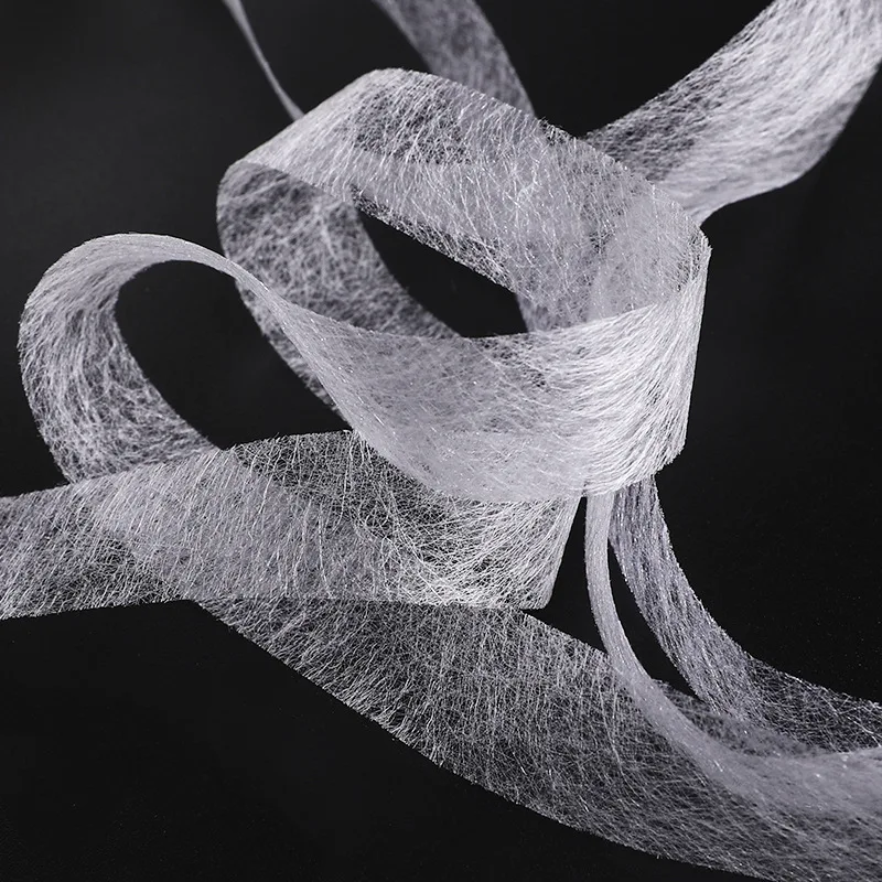 Этот продукт называется двусторонней клейкой подкладкой и нетканой двухсторонней клейкой лентой при использовании: поместите его в середину двух слоев ткани, гладить горячим, два слоя ткани скреплены вместе, а затем прошиты, таким образом, шов не будет смещать ткань. Это очень полезная клейкая подкладка