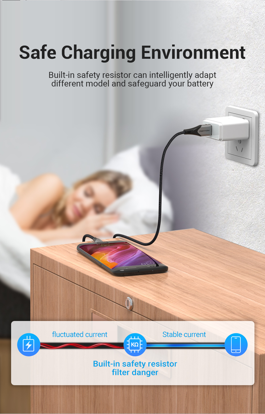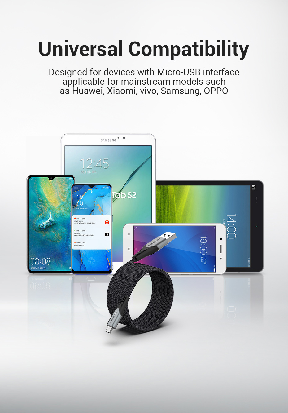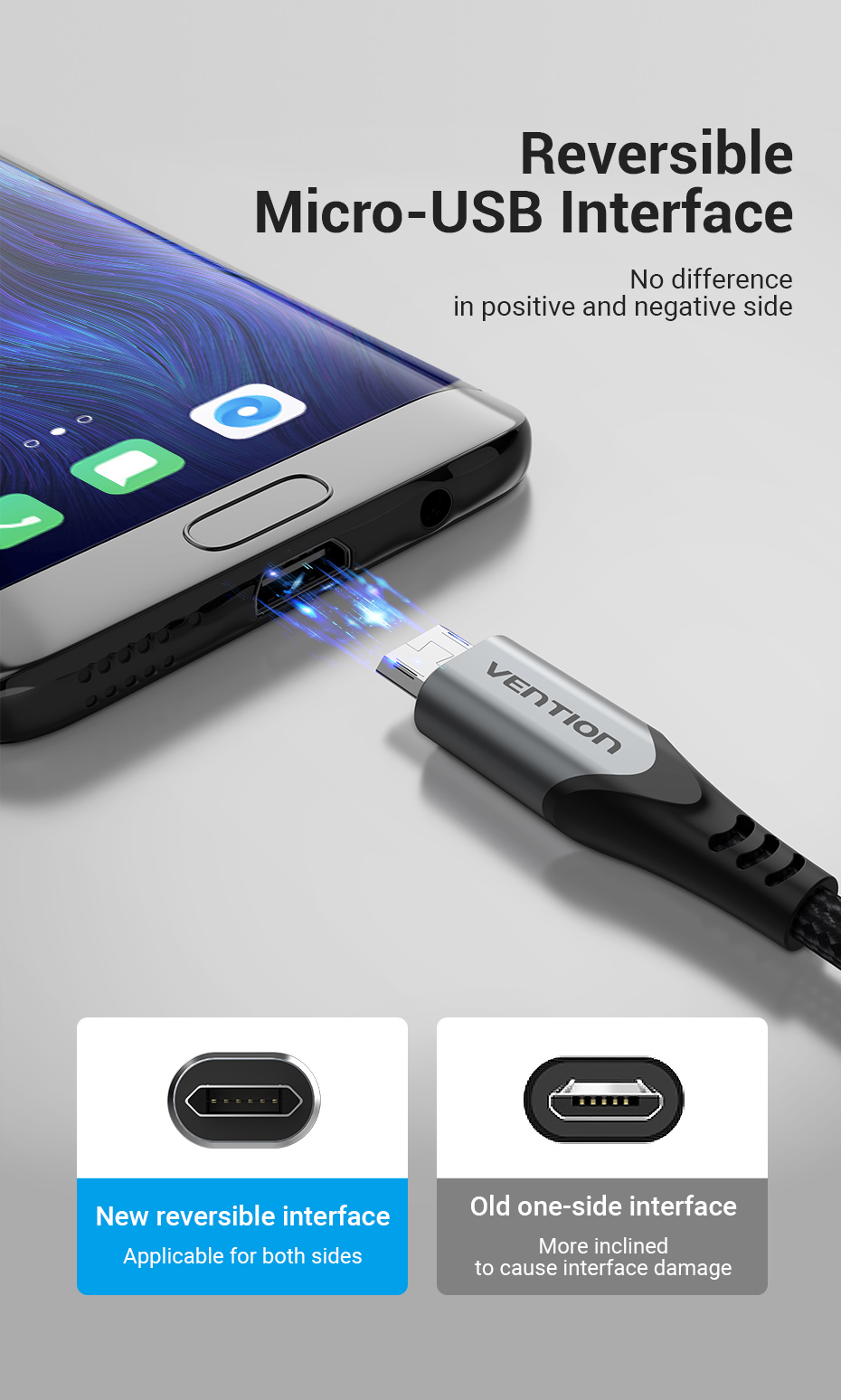 [Двусторонняя вилка] - Прямоугольный кабель micro USB, имеющий Реверсивный micro-коннектор, супер двусторонний микро-разъем обновленная версия от стандартного micro-коннектора, нет необходимости распознавать вверх или вниз сторона для зарядки. Обратите внимание, что этот товар не подходит для вашего телефона, когда он покрыт сверхпрочным толстым чехол.