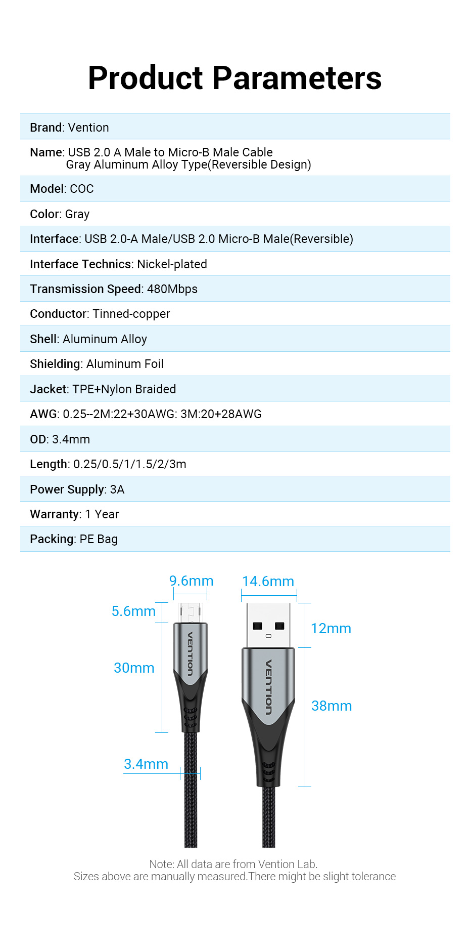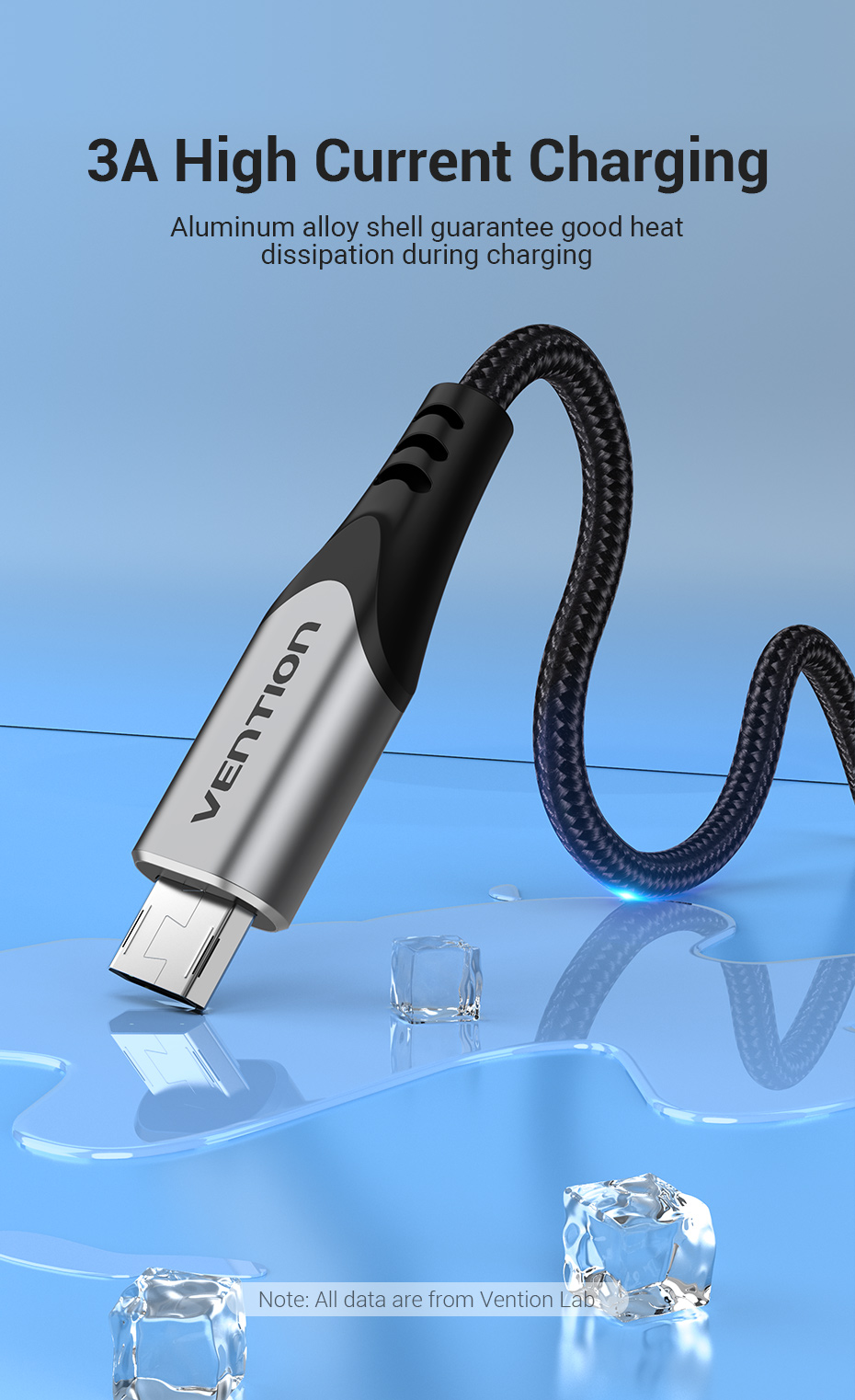 Двусторонний кабель Micro USB Vention, 3 А, нейлоновый кабель для быстрой зарядки для Samsung, Xiaomi, HTC, LG, USB-кабель для зарядки и передачи данных, внешний кабель 3 м