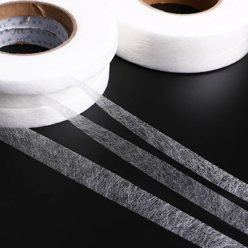 Этот продукт называется двусторонней клейкой подкладкой и нетканой двухсторонней клейкой лентой при использовании: поместите его в середину двух слоев ткани, гладить горячим, два слоя ткани скреплены вместе, а затем прошиты, таким образом, шов не будет смещать ткань. Это очень полезная клейкая подкладка