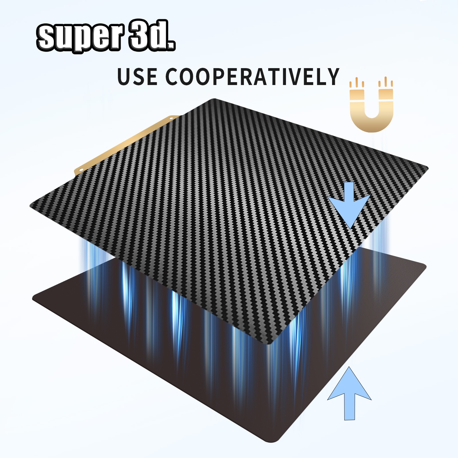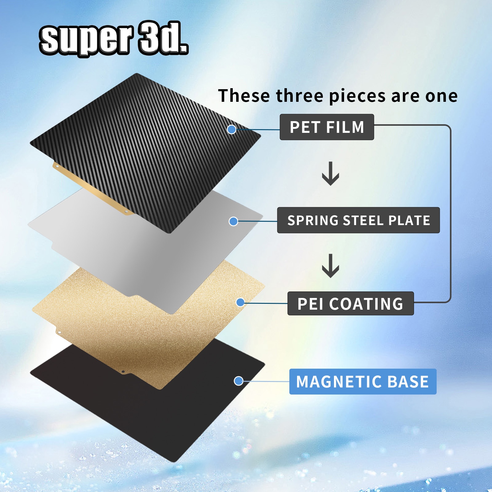3. Адсорбируйте сторону PEI или пружинную стальную пластину со стороны ПЭТ на магнитном основании. (В ПЭТ есть пленка, пожалуйста, Оторвите пленку перед использованием)