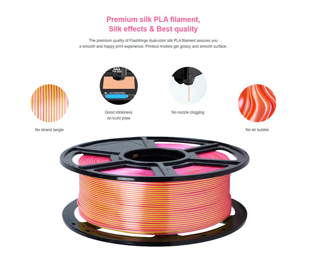 Недавно выпущенная Flashforge двухцветная шелковая нить PLA: