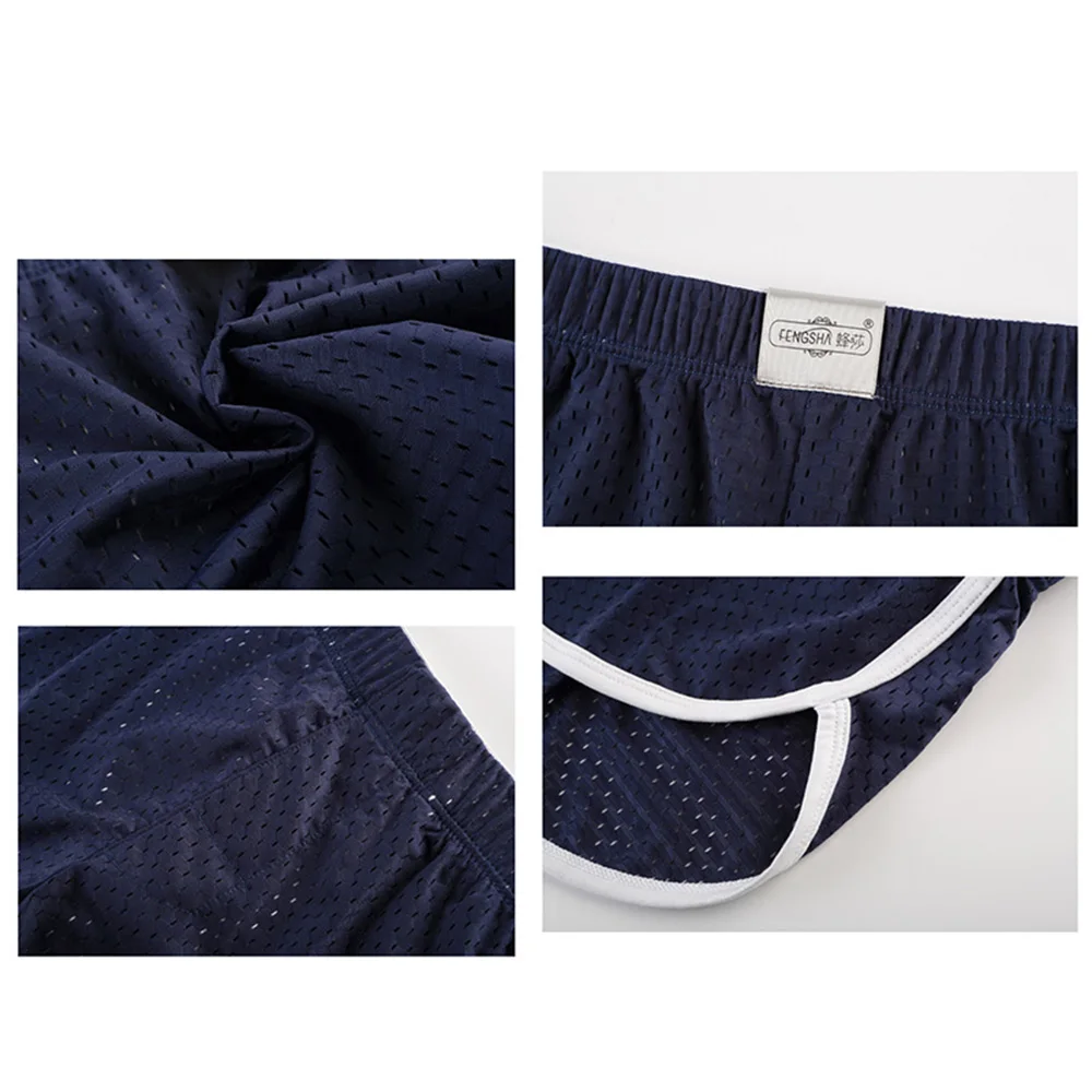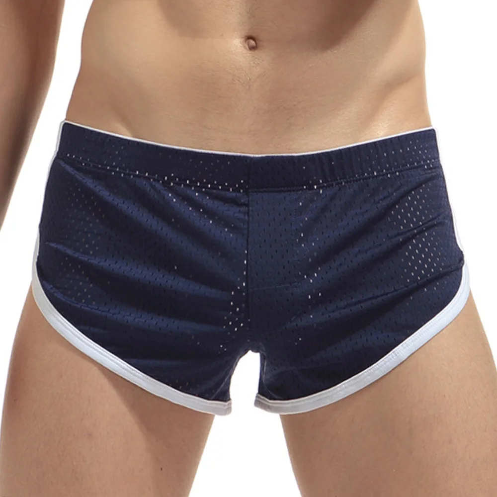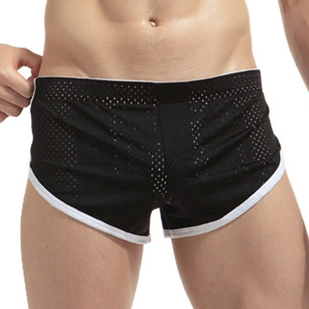 Дышащие сетчатые спортивные шорты, пижама, мужские повседневные боксеры, Трусы со стрелками, мужские шорты-боксеры с открытыми бедрами и разрезами по бокам
