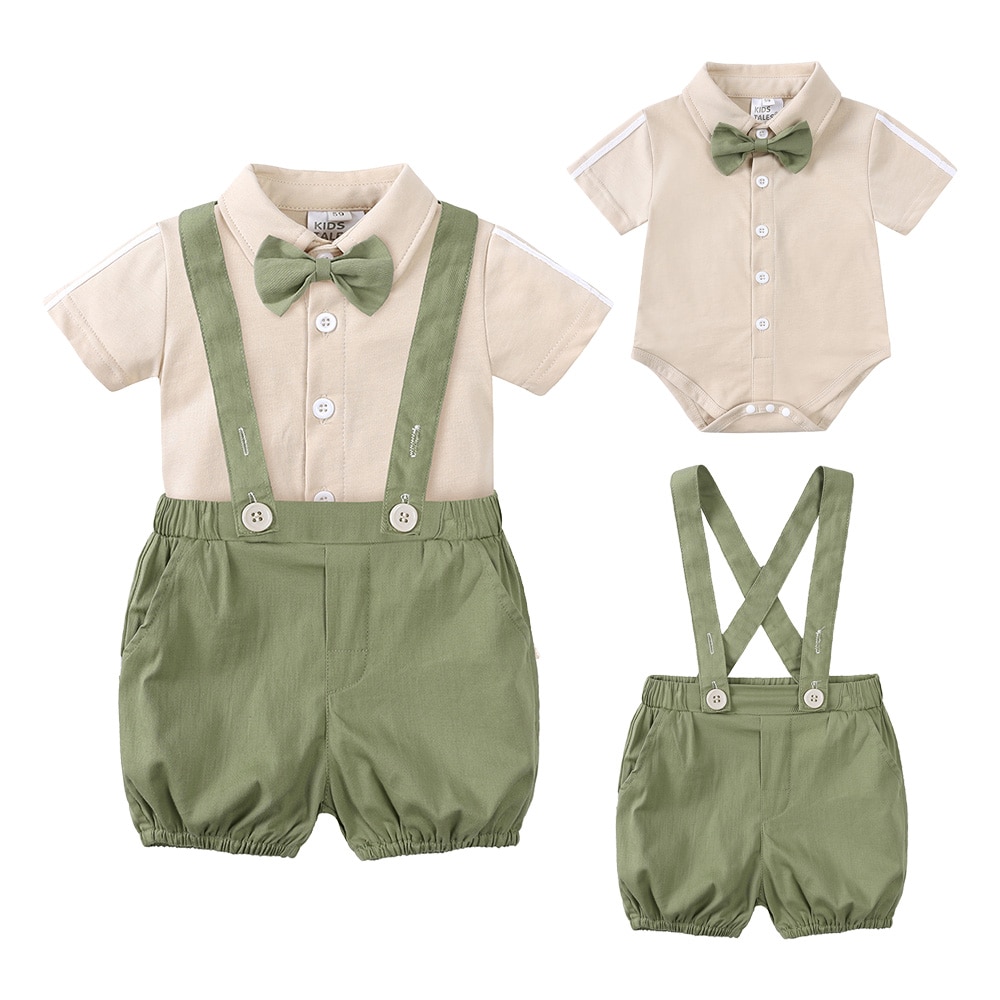 ● Наименование товара: New Essentials Gentleman Style Комбинезон с галстуком-бабочкой для маленьких мальчиков Комплекты формальной одежды Хлопковый комбинезон + шорты на подтяжках Костюм для новорожденных