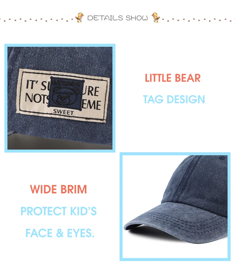 -Дети Винтаж Джинсовая Кепка Летние Дети Стирать Джинсовая Бейсболка