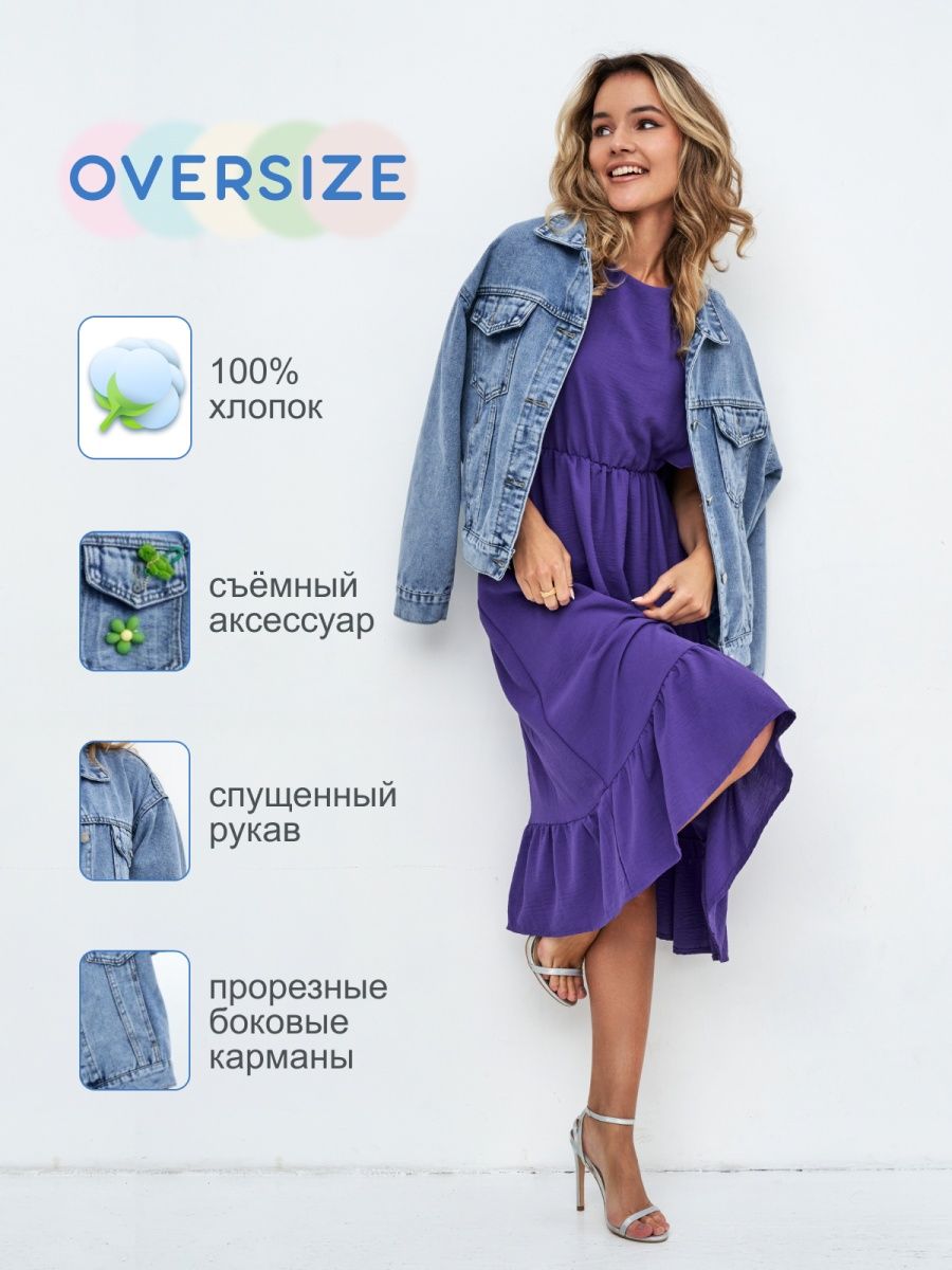 Описание: Женская джинсовая куртка отлично подходит для весны, лета и осени. Имеет различные размеры, включая большие, чтобы каждая женщина смогла подобрать подходящий. Эта модная и стильная верхняя одежда идеально сочетается с вещами разных стилей. Куртка изготовлена из высококачественного хлопка, обладает укороченной длиной и классическим дизайном, что делает ее незаменимой для подростков и девушек. Также подходит для беременных женщин и женщин с большими размерами. Джинсовка женская со съемным капюшоном является демисезонной и легкой. В нее вместятся все необходимые вещи благодаря своим карманам. Она подходит для повседневного образа, а также для спортивных мероприятий. Куртка имеет стильный и модный дизайн, который будет актуальным не только в настоящем, но и в будущем. Простые и лаконичные пуговицы придают ей универсальности. Модель оверсайз добавит образу стильности и элегантности. Она подходит для любого вида повседневной и даже офисной одежды. Куртка идеально комбинируется с джинсами и создает модный образ. Ее мягкая и натуральная ткань обеспечивает комфорт и легкость при ношении, делает ее теплой и удобной для холодных осенних дней. Выбирая эту джинсовую куртку, вы получаете не только базовый предмет гардероба, но также и функциональный и универсальный товар. Она подходит как для повседневных, так и для праздничных мероприятий. Джинсовый пиджак женский обладает приталенной формой, которая выгодно подчеркнет фигуру. Благодаря своему винтажному дизайну и синему цвету, она станет популярным и модным предметом гардероба. Джинсовая куртка предлагает широкой ассортимент размеров и моделей, чтобы удовлетворить потребности и предпочтения каждого покупателя. Она идеально подходит для взрослых и подростков, создавая красивый образ. Вы можете приобрести эту женскую джинсовку по доступной цене и наслаждаться ее качеством и стилем.