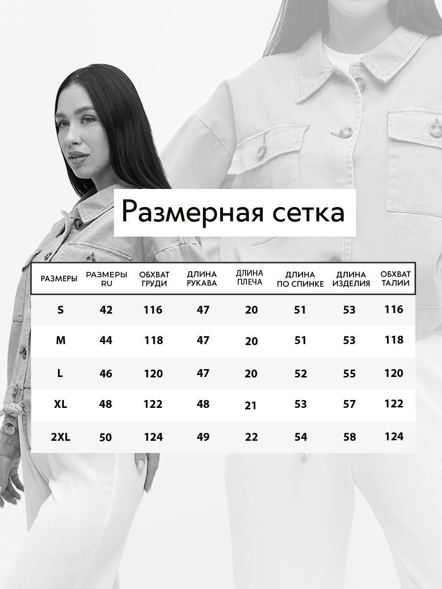 Описание: Джинсовая куртка женская - просто незаменимая вещь в гардеробе любой модницы. Верхняя одежда, несомненно, имеет множество вариаций, но джинсовка является действительно классикой. Укороченную куртку на пуговицах можно носить как летом, так и теплой весной или даже ранней осенью. Нашу демисезонную курточку украшают накладные карманы на пуговицах, а также отложной воротник. Она подойдет как для высоких, так и для невысоких девушек благодаря завязкам внизу куртки. С помощью них можно отрегулировать длину и сделать куртку идеальной и под себя. Если подвязать джинсовку, то поручится не удлиненная, а укороченная модель, которую так приятно накинуть летом на плечи. Оверсайз больших размеров подойдет не только для молодых девушек как весенняя одежда, но также для женщин и даже для девочек подростков в школу. Кроме того, куртку летнюю вместо косухи можно надеть на работу в офис, на прогулку, а также как одежду для занятий спортом: йогой, фитнесом, для бега или в поход, туризм, мотоспорт. Благодаря широкому размерному ряду каждая сможет подобрать верхнюю одежду на лето по размеру: 42, 44 и 46 размеры для стильных девушке, 48 и 50 для образа оверсайз, а также для беременных, у кого большие размеры. Одежда женская - джинцовка - хит сезона Весна-Лето 2023. Куртку рубашку можно завязать на узел снизу и тогда получится стильный и молодежный образ, который можно дополнить брюками или джинсами, а на верх надеть наш топ или худи. Представлена в нескольких цветах: куртка белая женская, джинсовка короткая бежевая или оливковая на весну. Подписывайтесь на бренд ZAIRCOM, чтобы первыми узнавать о новинках, акциях и скидках! И, конечно, заказывайте наши демисезонные куртки чтобы быть в тренде!