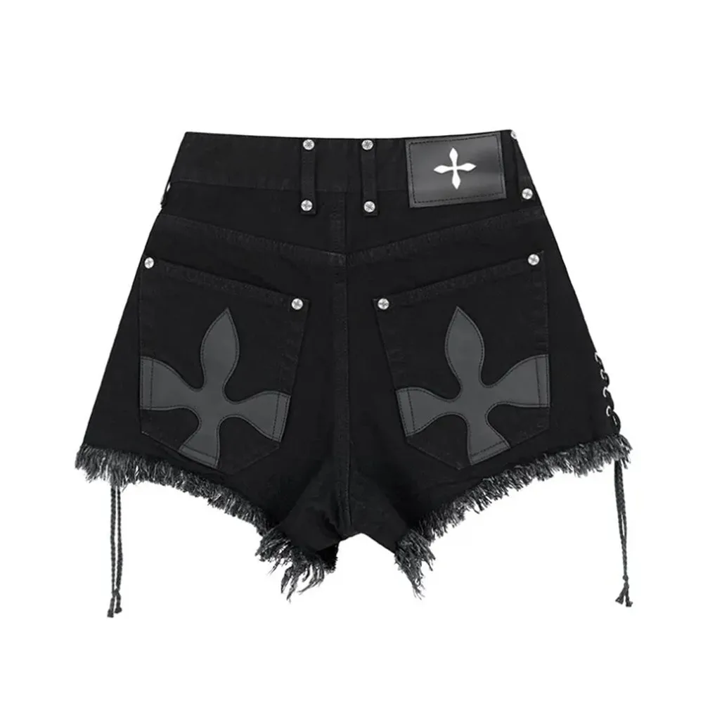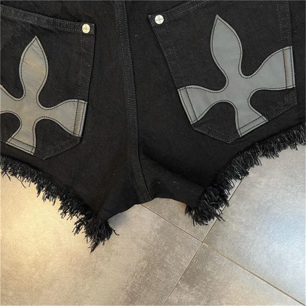 Джинсовые шорты женские с бахромой, подчеркивающие индивидуальность, Черные милые темные готические уличные брюки из денима в стиле хип-хоп, лето
