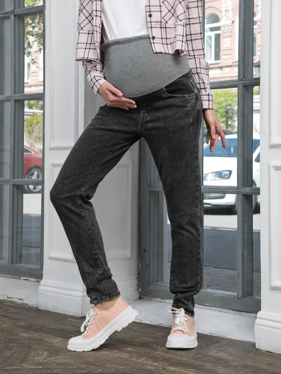 Описание: Женские, свободные, прямые джинсы слим с резинкой - это базовая вещь в гардеробе беременной девушки. Они имеют приятную к телу мягкую ткань, которая состоит из хлопка, эластана и полиэстера. Джинсы идеально подойдут на зимний, весенний, летний и осенний сезон. Современные, крутые, демисезонные брюки без принта с боковыми карманами подойдут к любому стилю одежды и будут легко гармонировать с разной одеждой. С ними можно составить как классические и офисные образы, так и праздничные и нарядные. Любой из них могут дополнить различные аксессуары и стильная обувь. Завышенные джинсы бананы прямого кроя с удобной посадкой на талии и широкие от бедра штанины в форме трубы с защипками внизу обеспечивают комфорт во время носки, не сковывают движения. Большая резинка на поясе оснащена специальной лентой с отверстиями и застежкой на пуговице для регулировки размера на разных сроках беременности и хорошей поддержки живота, в отличие от узких аналогов. Красивые, необычные оверсайз джинсы из денима могут носить молодые девушки и взрослые женщины в совершенно разном возрасте, и конечно, будущие мамы. В ассортименте представлены в голубом, сером и светло-синем цвете. Размерный ряд от 42 до 50 размера позволяет выбрать комфортный вариант для разной комплекции - стройных, полных, в том числе не беременных девушек разного роста. Красивые брюки джинс можно надеть для похода на работу в офис, школу, прогулку, взять с собой в путешествие, на отдых в качестве сменной одежды. Трендовые облегающие джинсы - классику можно использовать как уличную, офисную, школьную и домашнюю вещь на зиму, осень, лето и весну. Джинсы стрейч подойдут на весь срок беременности. Их легко стирать в машинке при 40 градусах. Качественный плотный материал не дает усадку, не линяет и сохраняет свой первоначальный вид. Зауженные к низу модные джинсы станут идеальным дополнением в стиле casual. Удобные, длинные штаны являются красивой повседневной моделью. Джинсовые вещи всегда актуальны. У нас есть акции и распродажи, вы можете купить наши товары в подарок со скидкой!