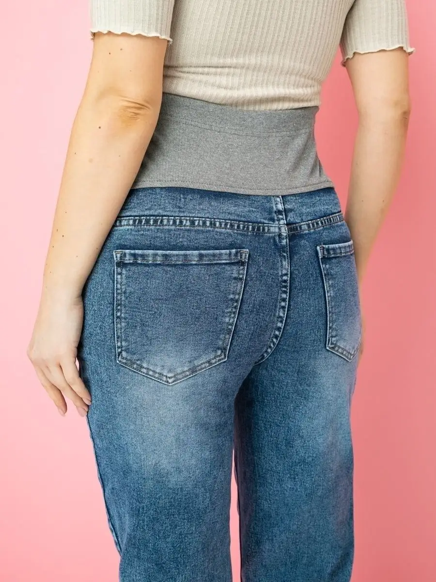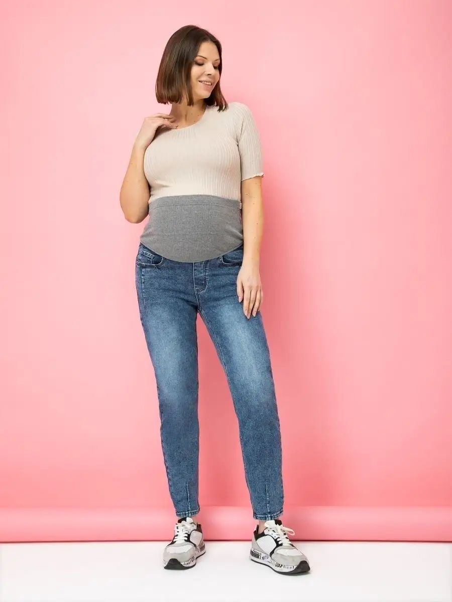 Описание: Женские, свободные, прямые джинсы слим с резинкой - это базовая вещь в гардеробе беременной девушки. Они имеют приятную к телу мягкую ткань, которая состоит из хлопка, эластана и полиэстера. Джинсы идеально подойдут на зимний, весенний, летний и осенний сезон. Современные, крутые, демисезонные брюки без принта с боковыми карманами подойдут к любому стилю одежды и будут легко гармонировать с разной одеждой. С ними можно составить как классические и офисные образы, так и праздничные и нарядные. Любой из них могут дополнить различные аксессуары и стильная обувь. Завышенные джинсы бананы прямого кроя с удобной посадкой на талии и широкие от бедра штанины в форме трубы с защипками внизу обеспечивают комфорт во время носки, не сковывают движения. Большая резинка на поясе оснащена специальной лентой с отверстиями и застежкой на пуговице для регулировки размера на разных сроках беременности и хорошей поддержки живота, в отличие от узких аналогов. Красивые, необычные оверсайз джинсы из денима могут носить молодые девушки и взрослые женщины в совершенно разном возрасте, и конечно, будущие мамы. В ассортименте представлены в голубом, сером и светло-синем цвете. Размерный ряд от 42 до 50 размера позволяет выбрать комфортный вариант для разной комплекции - стройных, полных, в том числе не беременных девушек разного роста. Красивые брюки джинс можно надеть для похода на работу в офис, школу, прогулку, взять с собой в путешествие, на отдых в качестве сменной одежды. Трендовые облегающие джинсы - классику можно использовать как уличную, офисную, школьную и домашнюю вещь на зиму, осень, лето и весну. Джинсы стрейч подойдут на весь срок беременности. Их легко стирать в машинке при 40 градусах. Качественный плотный материал не дает усадку, не линяет и сохраняет свой первоначальный вид. Зауженные к низу модные джинсы станут идеальным дополнением в стиле casual. Удобные, длинные штаны являются красивой повседневной моделью. Джинсовые вещи всегда актуальны. У нас есть акции и распродажи, вы можете купить наши товары в подарок со скидкой!