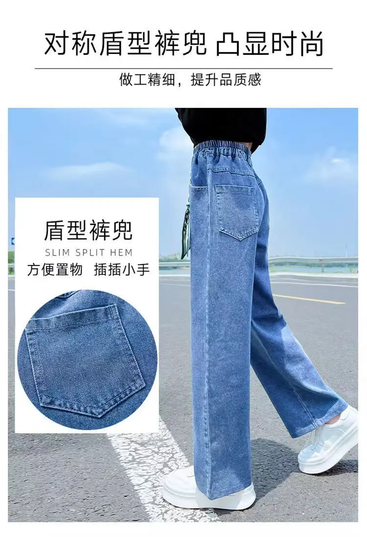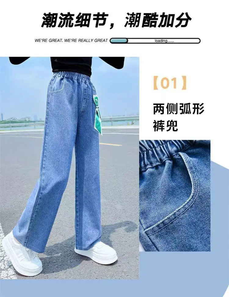 2023 Детские джинсы для девочек Детская одежда Классические брюки Детская джинсовая одежда Повседневные свободные брюки для девочек-подростков 4-14 лет