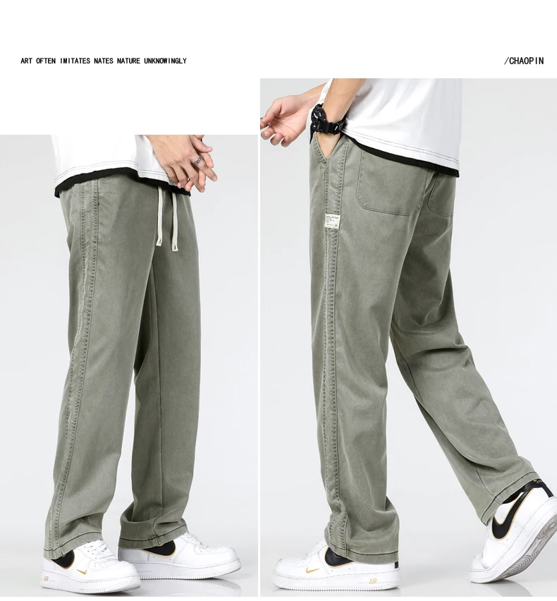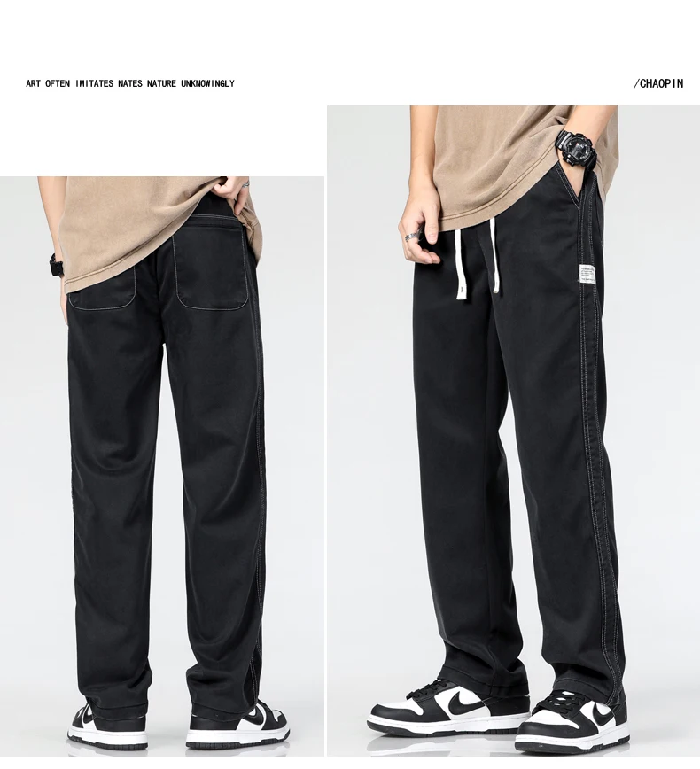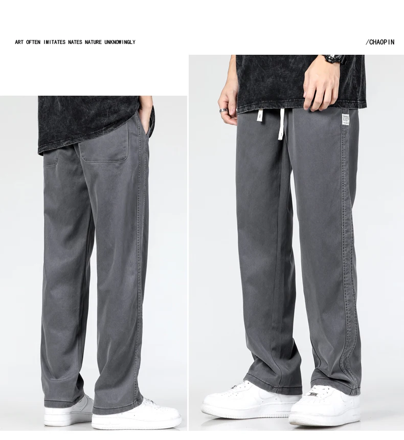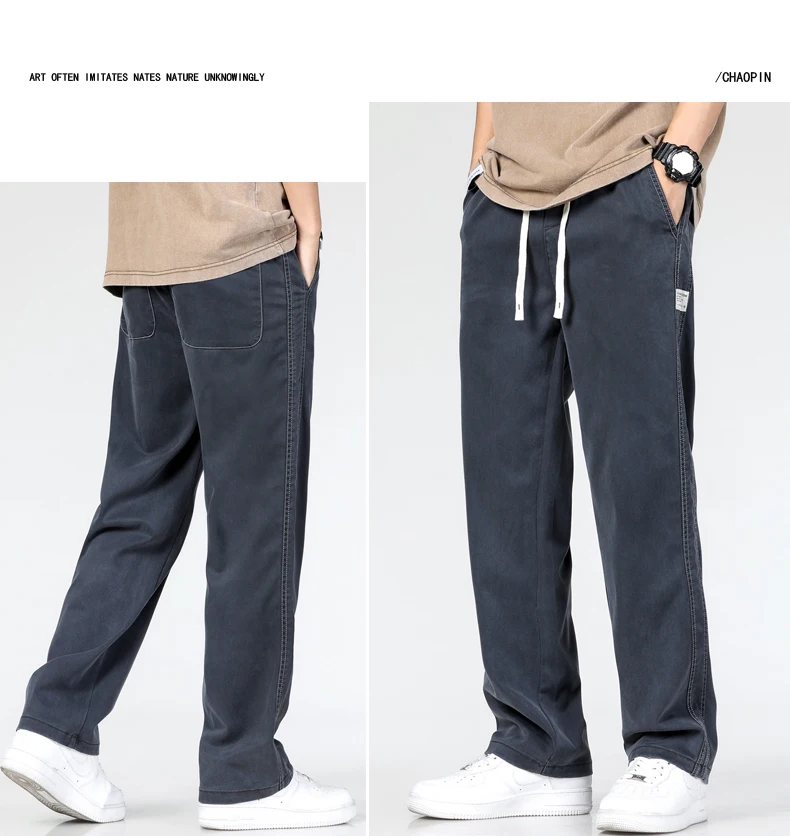 Джинсы Lyocell мужские четырех цветов, тонкие повседневные эластичные трендовые брюки из денима, свободные прямые брюки с широкими штанинами, весна-лето