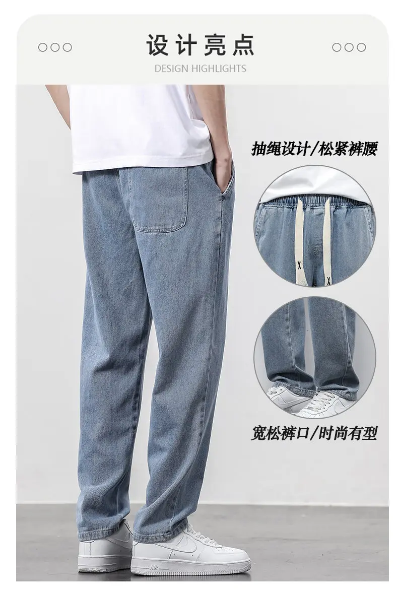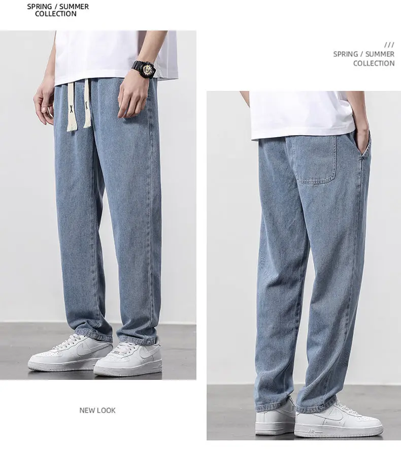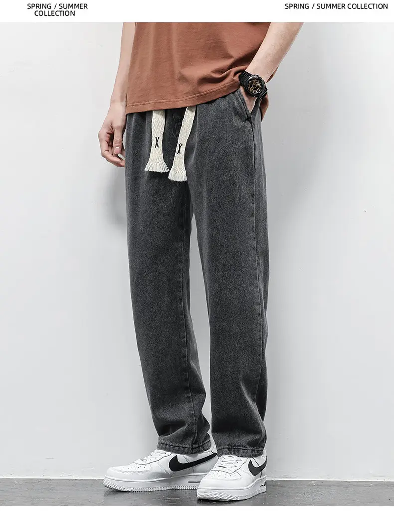 Джинсы мужские прямые с поясом на резинке, брюки в уличном стиле, повседневные брюки в японском стиле, стиль ретро, весна-лето