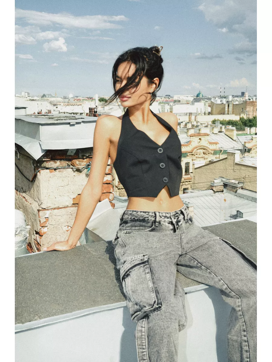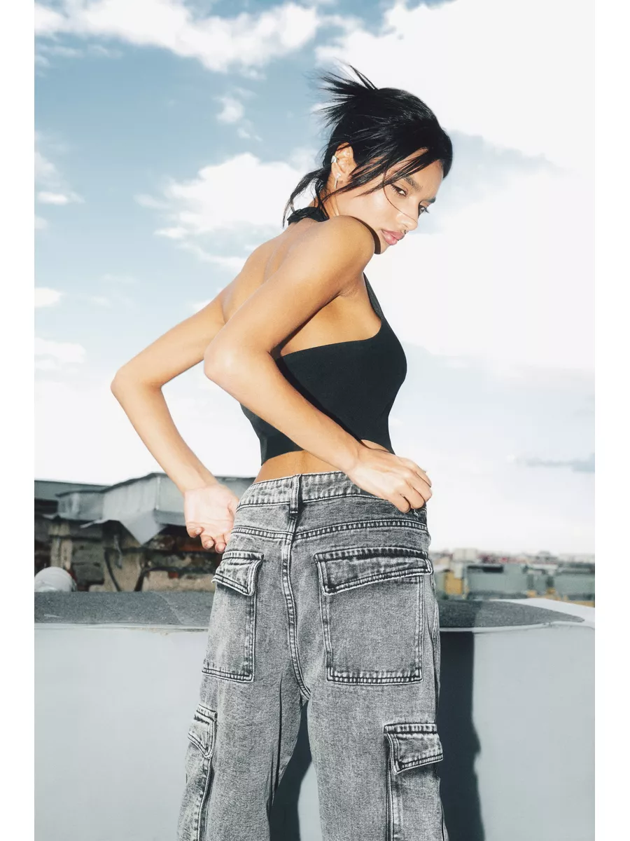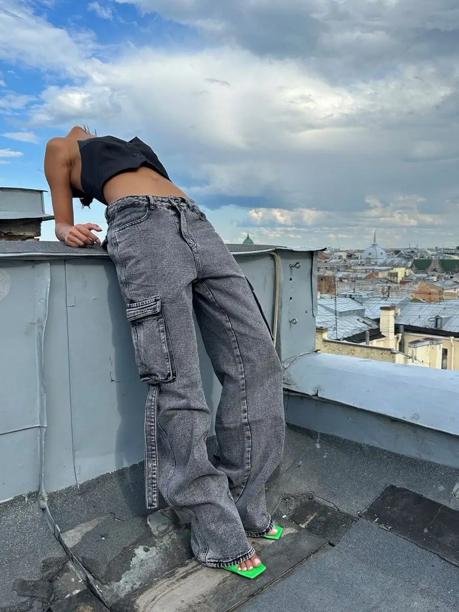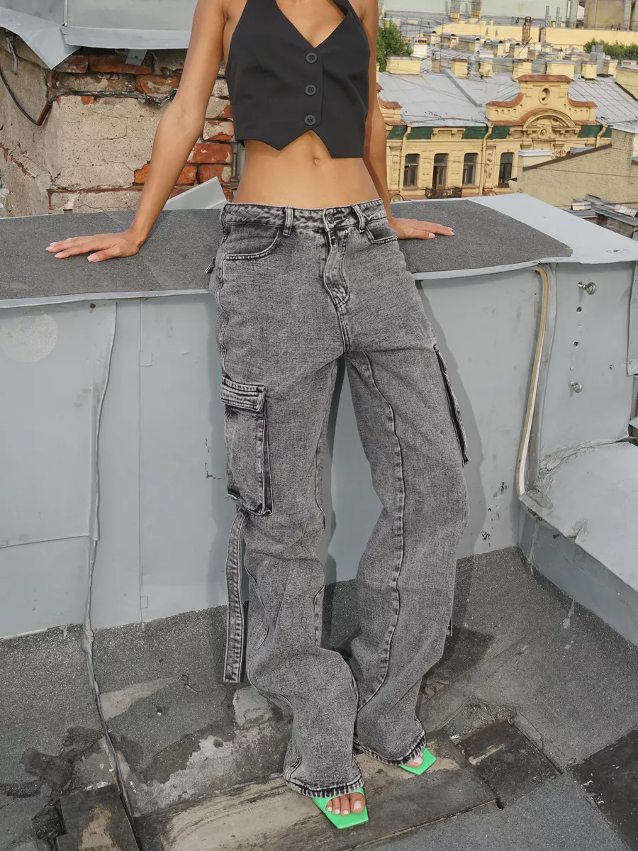 Джинсы прямые карго широкие