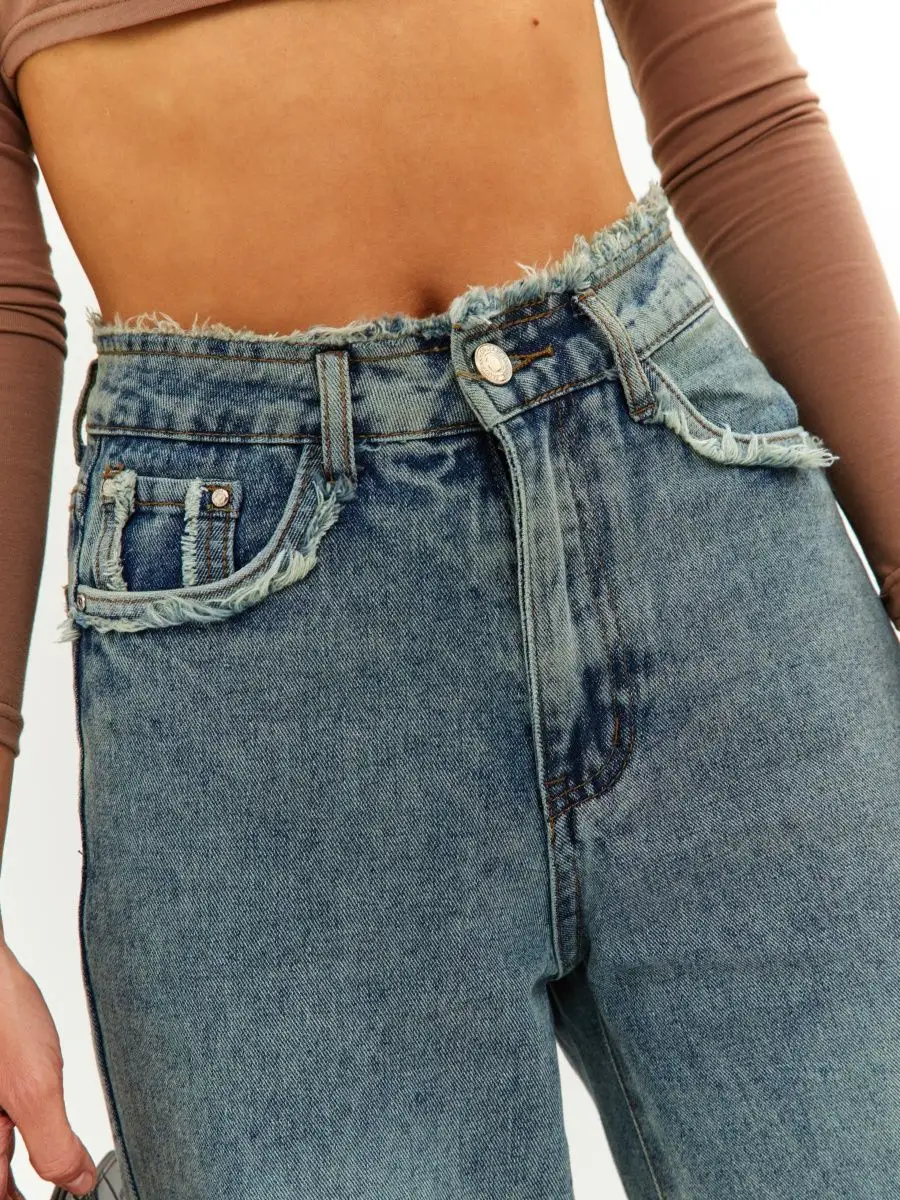 Джинсы трубы с бахромой