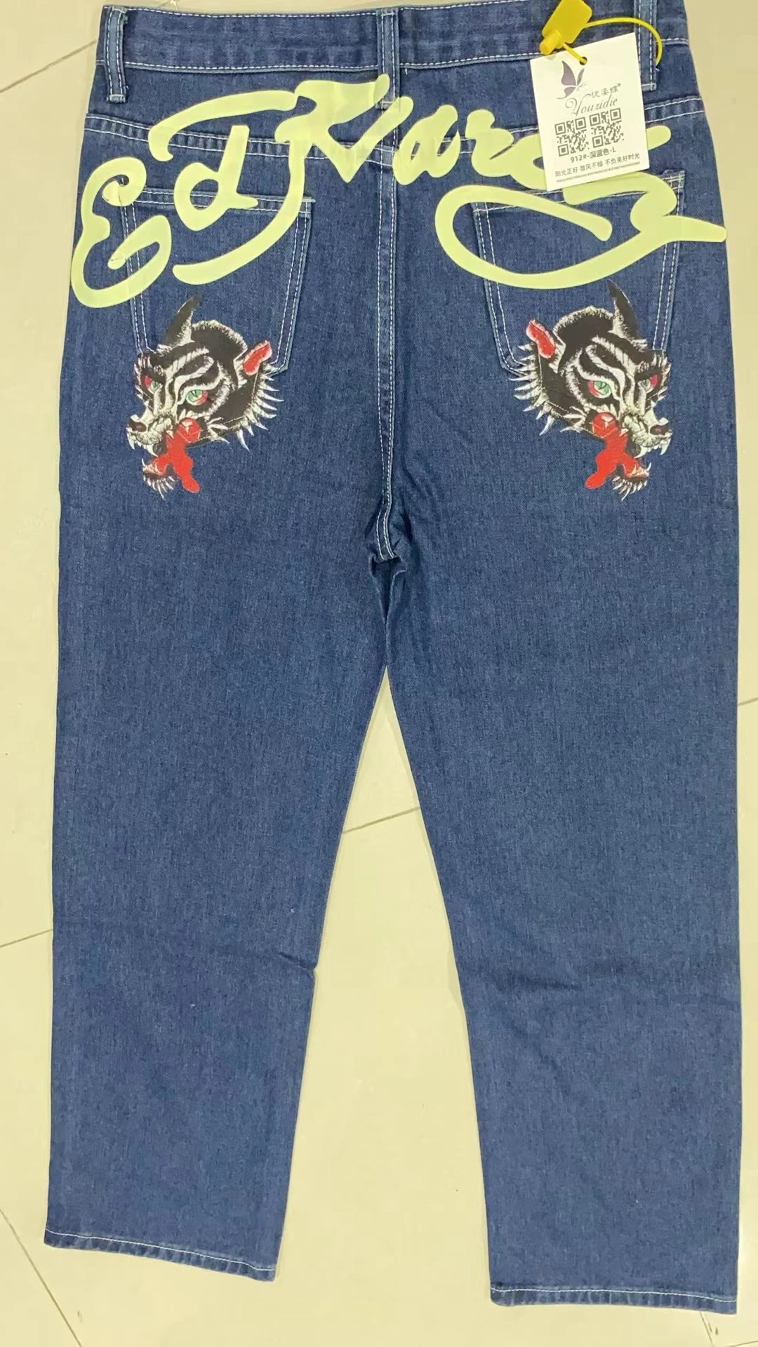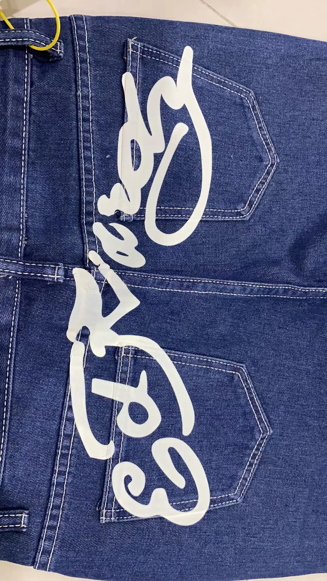 Джинсы y2k мужские с буквенным принтом, свободные универсальные брюки в стиле High Street, прямые штаны в стиле ретро, синие, в стиле хип-хоп, для пар