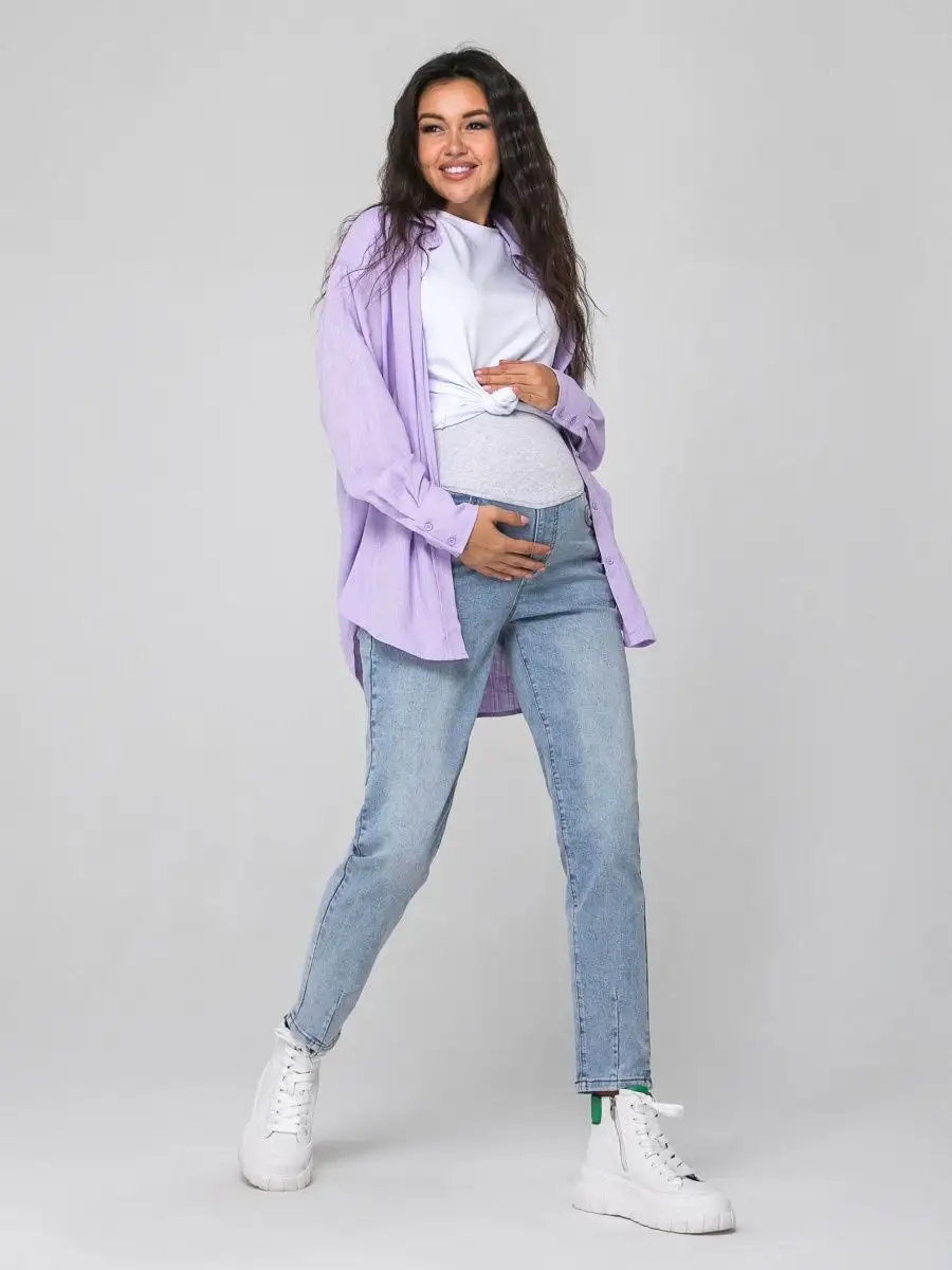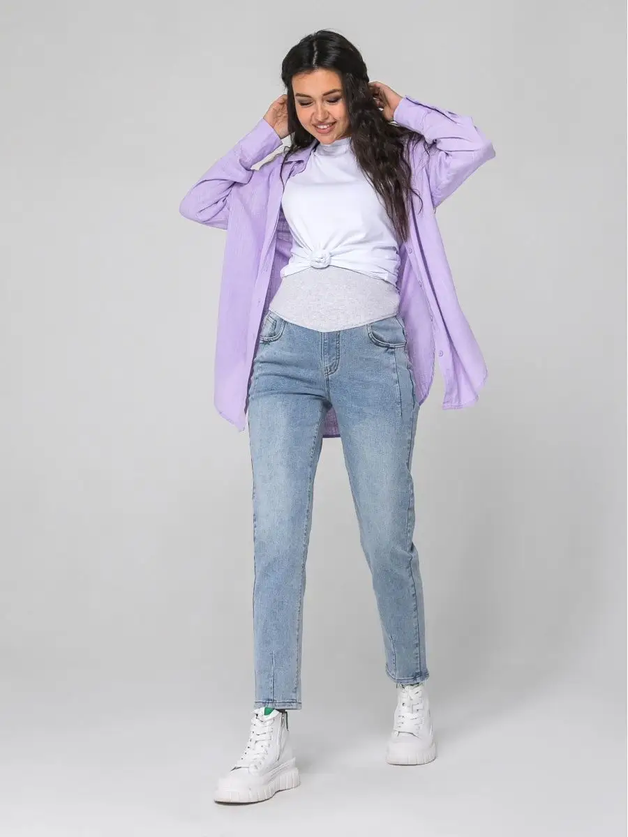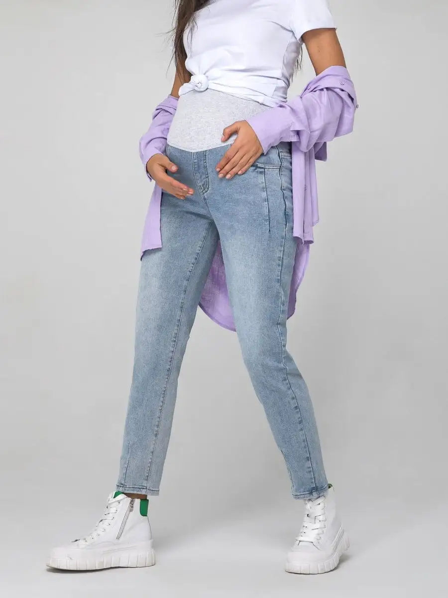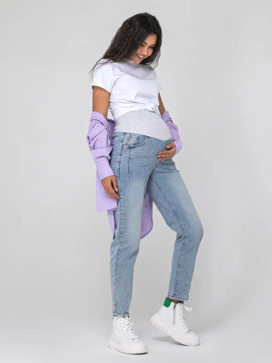 Описание: Женские, свободные, прямые джинсы слим с резинкой - это базовая вещь в гардеробе беременной девушки. Они имеют приятную к телу мягкую ткань, которая состоит из хлопка, эластана и полиэстера. Джинсы идеально подойдут на зимний, весенний, летний и осенний сезон. Современные, крутые, демисезонные брюки без принта с боковыми карманами подойдут к любому стилю одежды и будут легко гармонировать с разной одеждой. С ними можно составить как классические и офисные образы, так и праздничные и нарядные. Любой из них могут дополнить различные аксессуары и стильная обувь. Завышенные джинсы бананы прямого кроя с удобной посадкой на талии и широкие от бедра штанины в форме трубы с защипками внизу обеспечивают комфорт во время носки, не сковывают движения. Большая резинка на поясе оснащена специальной лентой с отверстиями и застежкой на пуговице для регулировки размера на разных сроках беременности и хорошей поддержки живота, в отличие от узких аналогов. Красивые, необычные оверсайз джинсы из денима могут носить молодые девушки и взрослые женщины в совершенно разном возрасте, и конечно, будущие мамы. В ассортименте представлены в голубом, сером и светло-синем цвете. Размерный ряд от 42 до 50 размера позволяет выбрать комфортный вариант для разной комплекции - стройных, полных, в том числе не беременных девушек разного роста. Красивые брюки джинс можно надеть для похода на работу в офис, школу, прогулку, взять с собой в путешествие, на отдых в качестве сменной одежды. Трендовые облегающие джинсы - классику можно использовать как уличную, офисную, школьную и домашнюю вещь на зиму, осень, лето и весну. Джинсы стрейч подойдут на весь срок беременности. Их легко стирать в машинке при 40 градусах. Качественный плотный материал не дает усадку, не линяет и сохраняет свой первоначальный вид. Зауженные к низу модные джинсы станут идеальным дополнением в стиле casual. Удобные, длинные штаны являются красивой повседневной моделью. Джинсовые вещи всегда актуальны. У нас есть акции и распродажи, вы можете купить наши товары в подарок со скидкой!