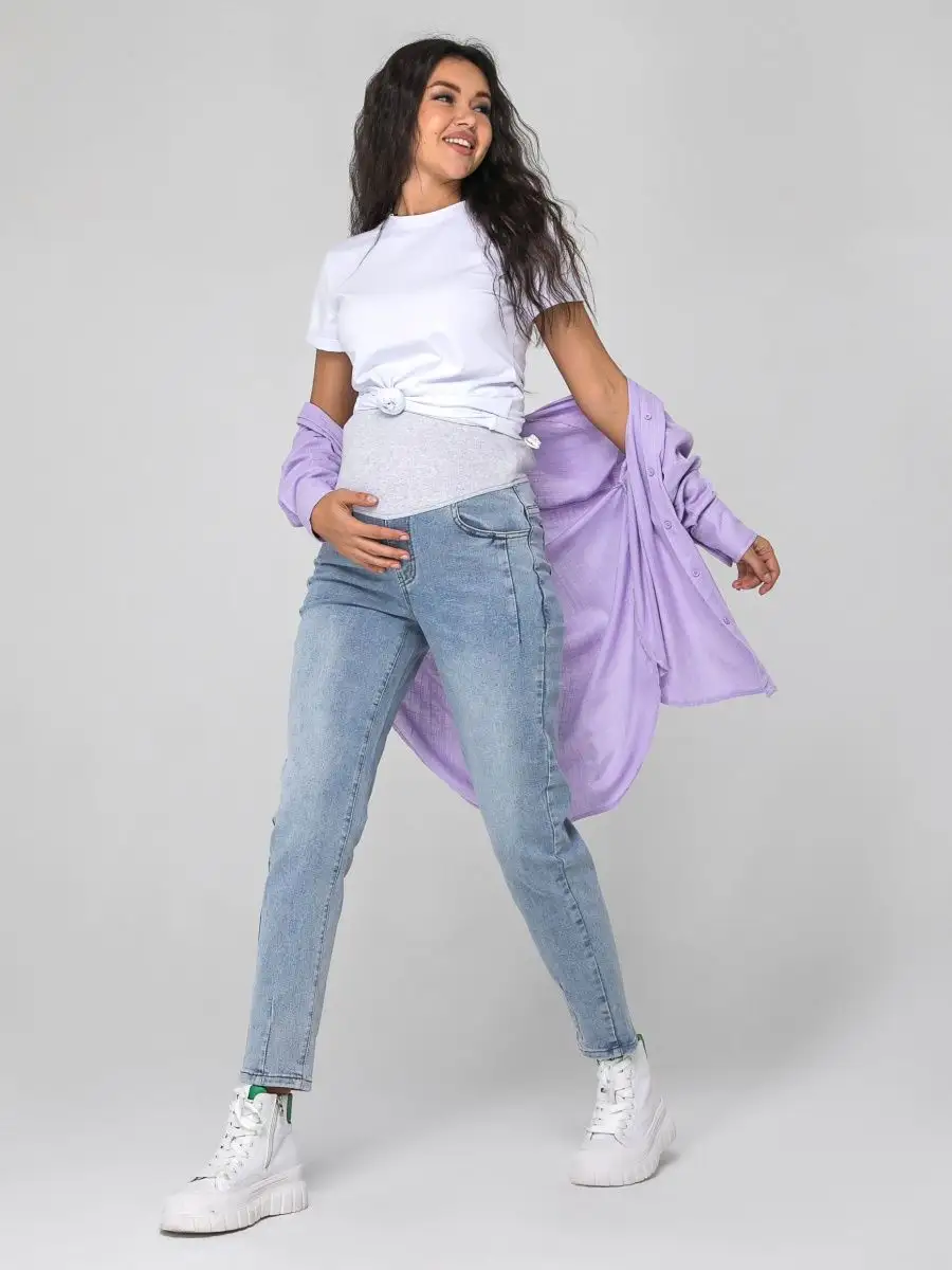 Джинсы женские с высокой посадкой на резинке для беременных