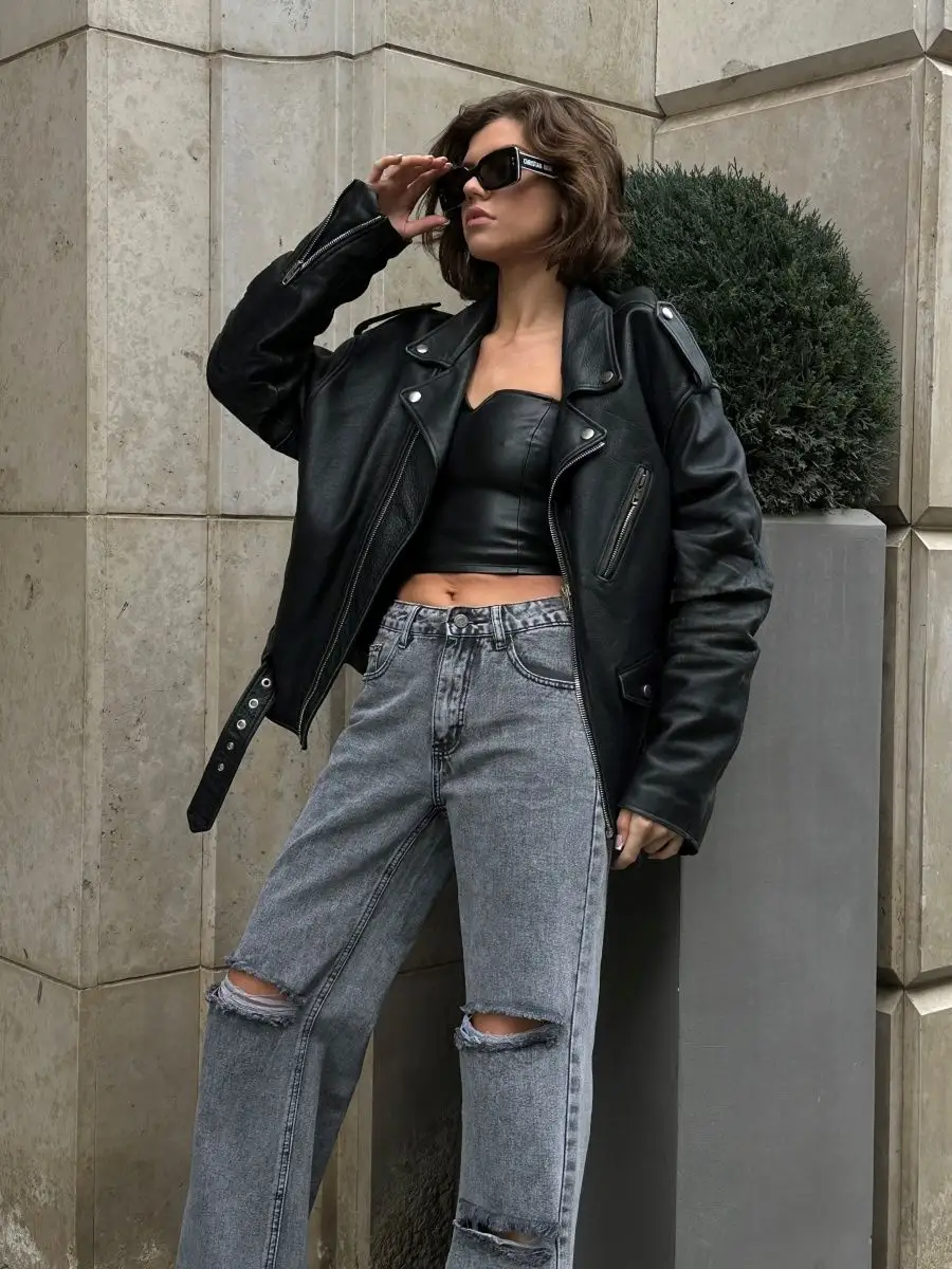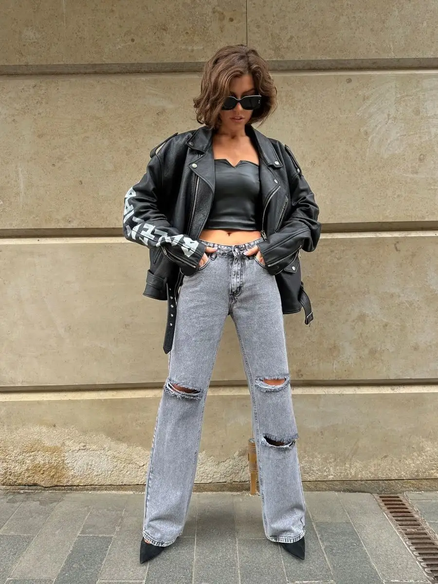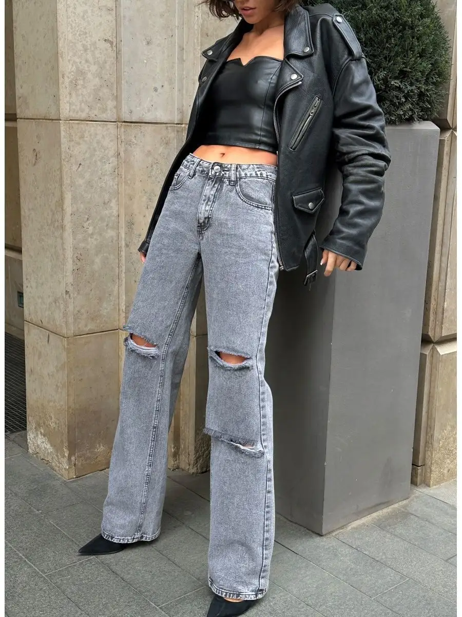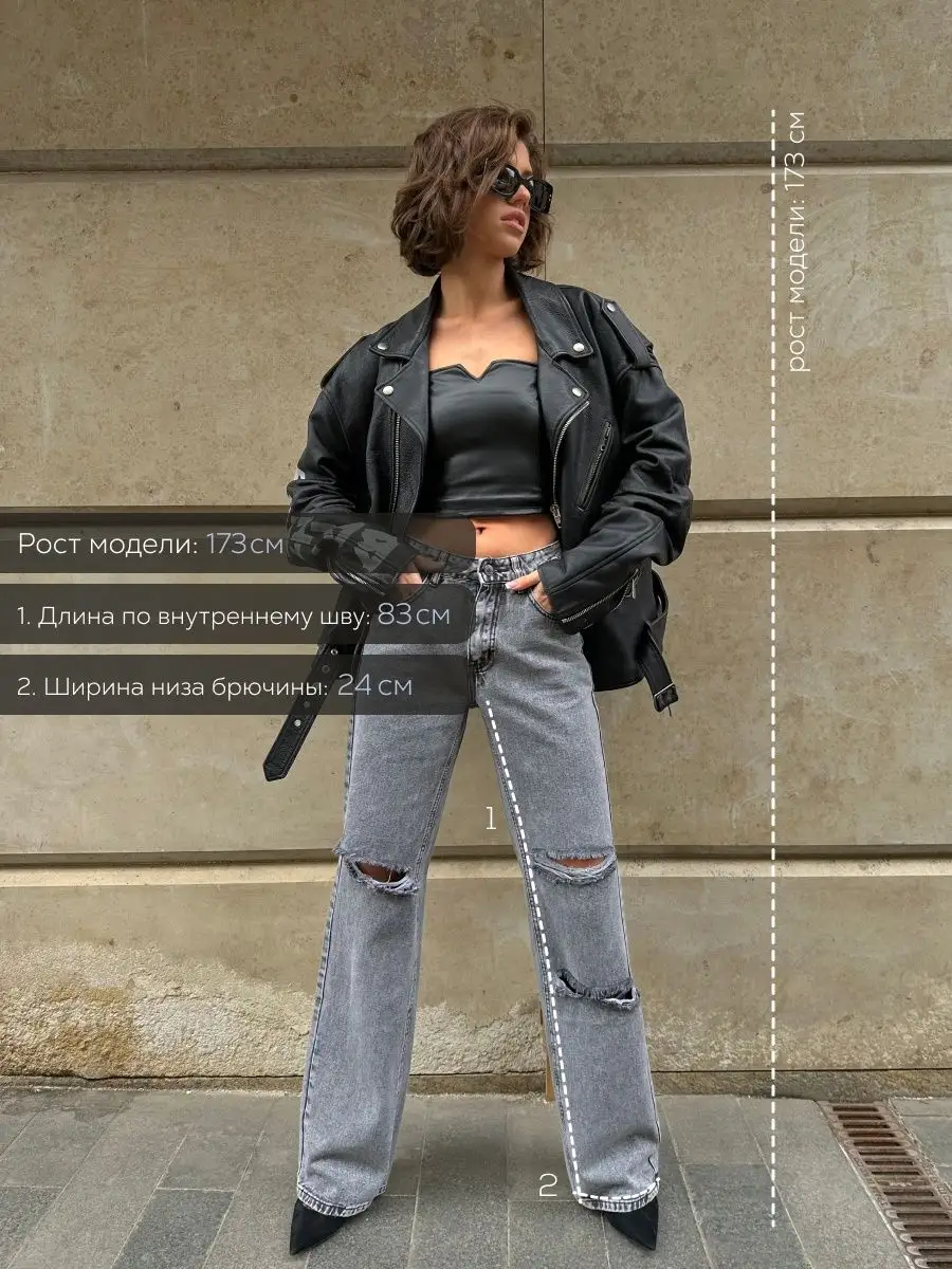 Описание: Джинсы рванные - модель с высокой посадкой, декорированная дырками, потертостями. Прямые, широкие от бедра джинсы с разрезами- актуальный тренд 2023 года. Однотонные демисезонные стильные джинсы женские универсальный предмет гардероба, подходящий для лета, весны. Возможность комбинировать различные стили как классические, так и офисные, поможет создать множество образов. Молодежные брюки с карманами по бокам будут органично сочетаться с лонгсливами, свитерами, толстовками, худи, блузами и футболками. Дополнить весенний лук помогут стильные аксессуары и обувь - кеды, ботинки на плоской подошве или каблуке, кроссовки, туфли. Завышенная талия и комфортная посадка акцентирует внимание на женственных очертаниях фигуры, корректируя визуально несовершенства. Двойная застежка в виде молнии и пуговицы позволяет модели плотно прилегать по бедрам. Универсальный крой с вырезами рассчитан на различные возрастные категории. Палаццо могут надеть подростки, молодые девушки, беременные женщины. Различные модели рассчитаны на худых и полных девушек. Джинсы трубы уникальны своим кроем, подходят для высоких и невысоких. Брюки клеш типа oversize - стильное решение для различных сфер жизни - в школу, для прогулки, романтического свидания, в офис, в дорогу. Свободные джеггинсы - практичный подарок для прекрасного пола на любые праздники. Их можно преподнести маме на день матери, дочери - на день рождения, бабушке - на Рождество, подруге, сестре - на Международный женский день. Скидки и распродажи позволят купить у нас красивые джинсы по выгодным ценам.