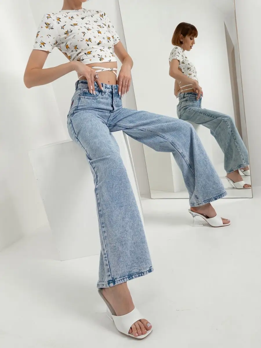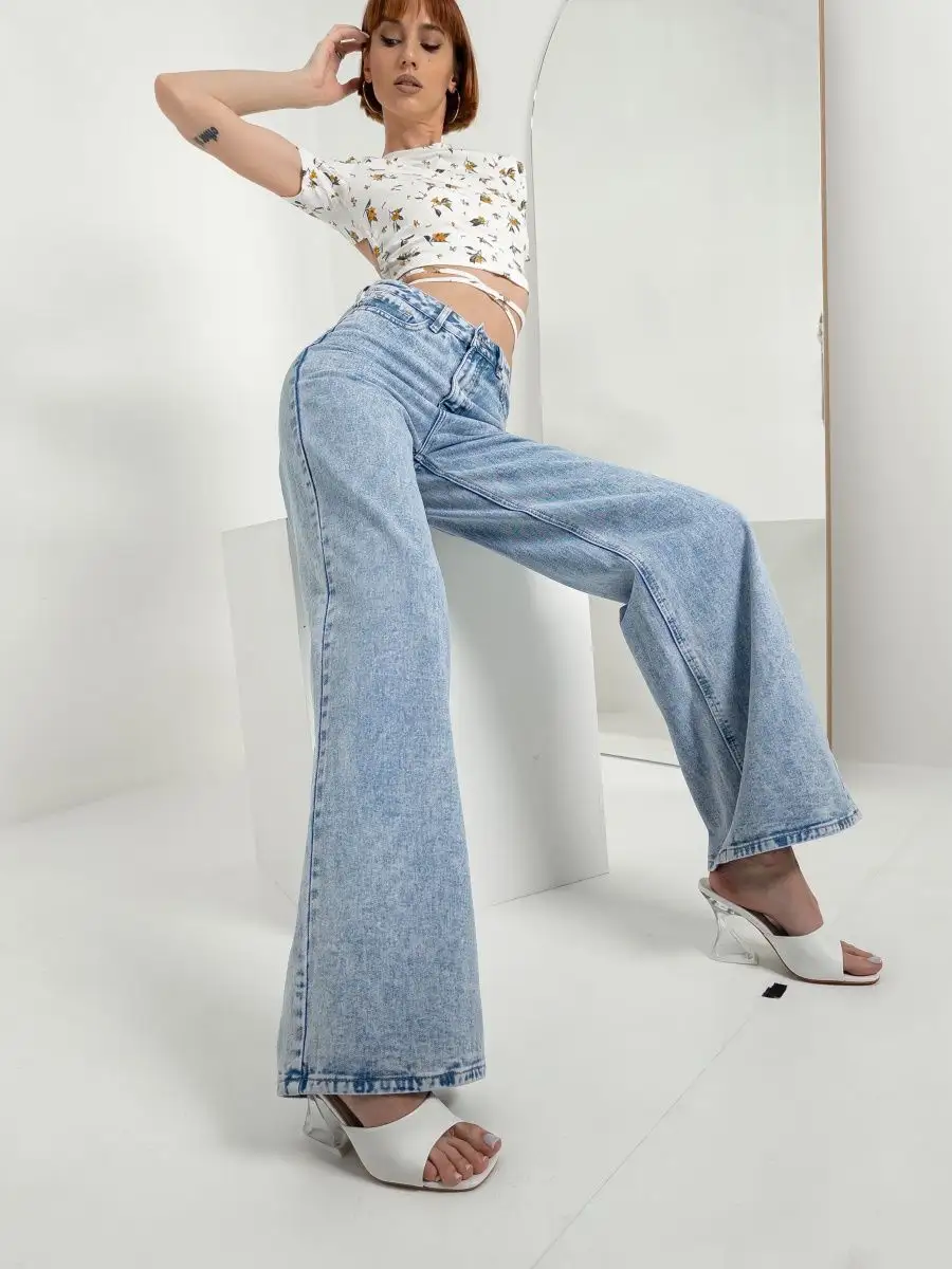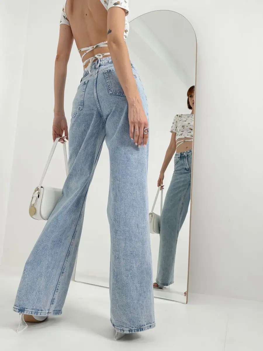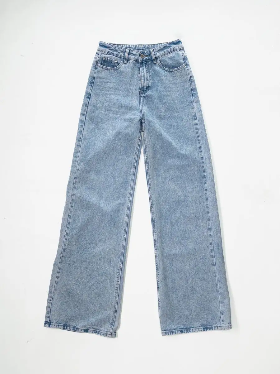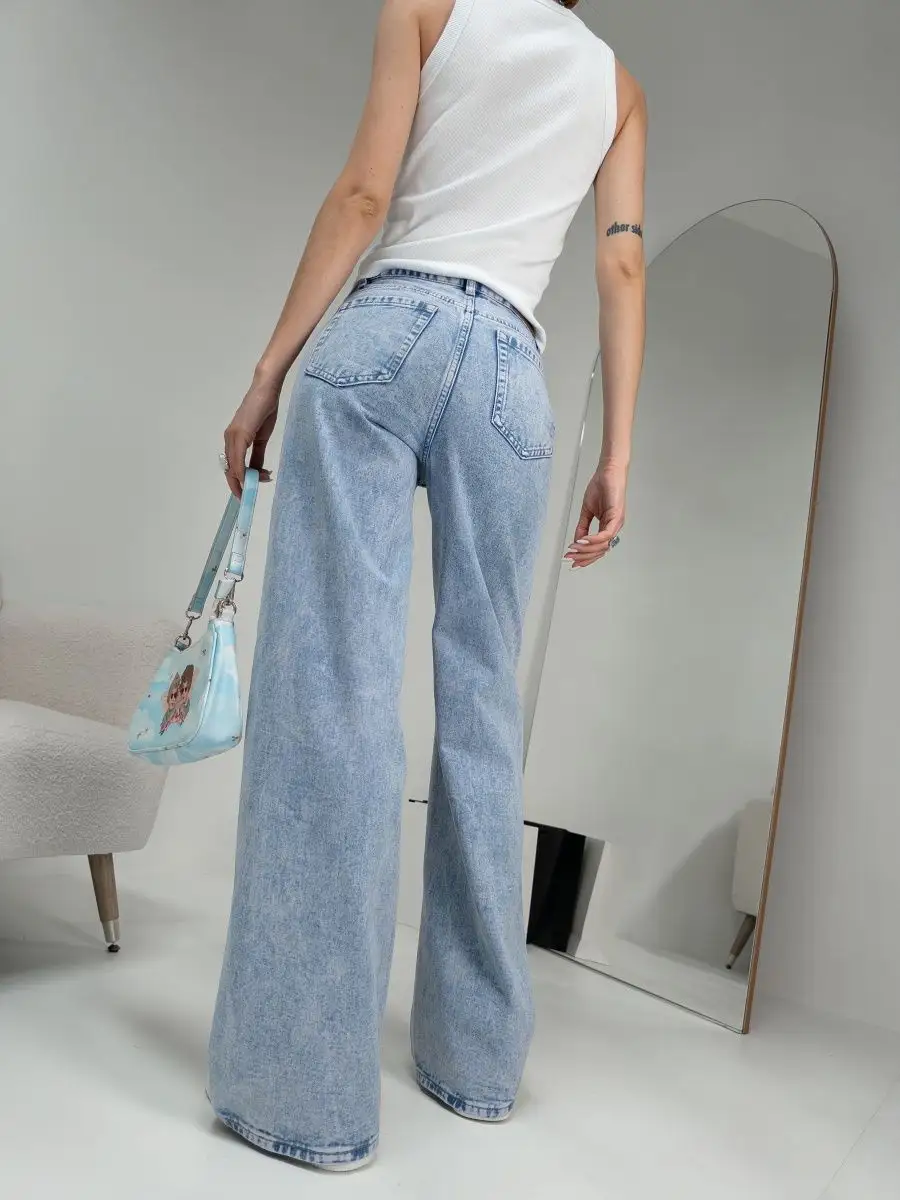 Джинсы женские с высокой посадкой широкие трубы голубые