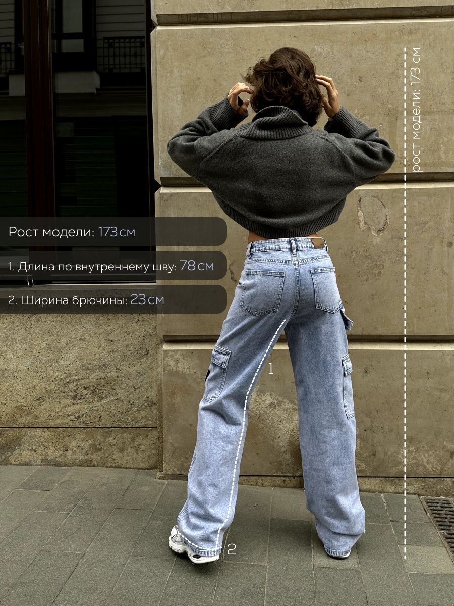 Описание: Женские джинсы карго с высокой посадкой станут ярким трендом 2023. Это не скучная классика, прямые клеши с завышенной талией и молнией сейчас в тренде. Плотная ткань из 100 % качественного и натурального хлопка приятно ощущается на коже и позволяет ей дышать, пойдут для женщин с любой фигурой. Большие крупные дамы плюс сайз ( plus size ) с удовольствием выбирают в офис на работу штаны клеш от колена бедра вместо брючного костюма из трикотажа. Современные, крутые, демисезонные брюки без принта подойдут к любому стилю одежды на осень, зиму, весну и лето на высокий и на низкий рост. С ними можно составить как классические и офисные образы, так и праздничные и нарядные, и даже спорт стиль. Необычные джинсы с боковыми карманами на штанах будут гармонировать с худи, свитерами, лонгсливами, футболками, любой верхней одеждой, под пиджак, с водолазкой и другими вещами. Ты можешь быть всегда в топе, если на тебе стильная молодежная вещь нашего бренда, модная, нарядная новинка. Под них легко подобрать аксессуары и обувь - можно носить с кроссовками, ботинками и моделями на каблуке. Завышенные джинсы с удобной посадкой на талии и широкие от бедра штанины подчеркивают формы и обеспечивают комфорт во время носки, не сковывают движения. Застежка на поясе на пуговице и молнии не давит на живот. Стильные, модные, джинсы трубы могут носить девочки - подростки, молодые девушки, взрослые женщины и будущие мамы. Хит 2023 длинные клешеные с широким низом подойдут и для беременных. Темные женские джинсы на высокой посадке с карманами по бокам и накладными задними карманами представлены в модели палацио. Широкий размерный ряд от 38 до 50 размера в зависимости от выбранного варианта позволяет подобрать джинсы на девушек разной комплекции - размерная линейка подходит и для полных дам. Популярные классные модели палаццо трубы создадут красивые бедра и стройные ноги, скроют полные икры, подчеркнут талию. Молодежные брюки джинсы - это базовый мастхэв любой женщины, который выгодно подчеркнет бедра и скроет недостатки за счет эффекта утягивания и свободный силуэт. Они отлично смотрятся на высоких девушках. На больших сроках беременности лучше выбрать модель с поясом на резинке, но пойдет для кормящих мам. В ассортименте магазина также представлены модели на невысоких девушек, девочек и женщин, расклешенные внизу брюки оверсайз можно надеть для похода на работу в офис, школу, на вечернюю прогулку, в клуб, взять с собой в путешествие в качестве сменной одежды. Их можно использовать как уличную, в школу школьную и домашнюю вещь на осенний, зимний, весенний, летний сезон. У нас самая широкая палитра цветов: светлые синие, голубые, вареные серые, белые, темные черные, цветные зеленые , коричневые, песочные бежевые, пастельные барби розовые Barbie, и мятные. Качественный материал не дает усадку, не линяет и сохраняет свой первоначальный вид. Некоторые мамы пишут нам, что взяли на дочку наши детские джинсы как подростковые школьные брюки. длинные шаровары станут оригинальным идеальным подарком на любой праздник: Международный женский день (8 марта), день рождения, Новый год, Рождество, день матери, 14 февраля ( день Святого Валентина ). Популярные, трендовые, длинные штаны можно подарить маме, дочери, бабушке, подруге, сестре, любому близкому человеку или порадовать себя любимую 