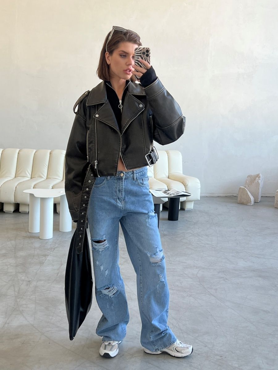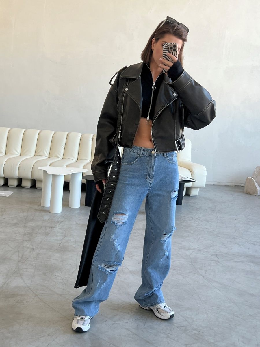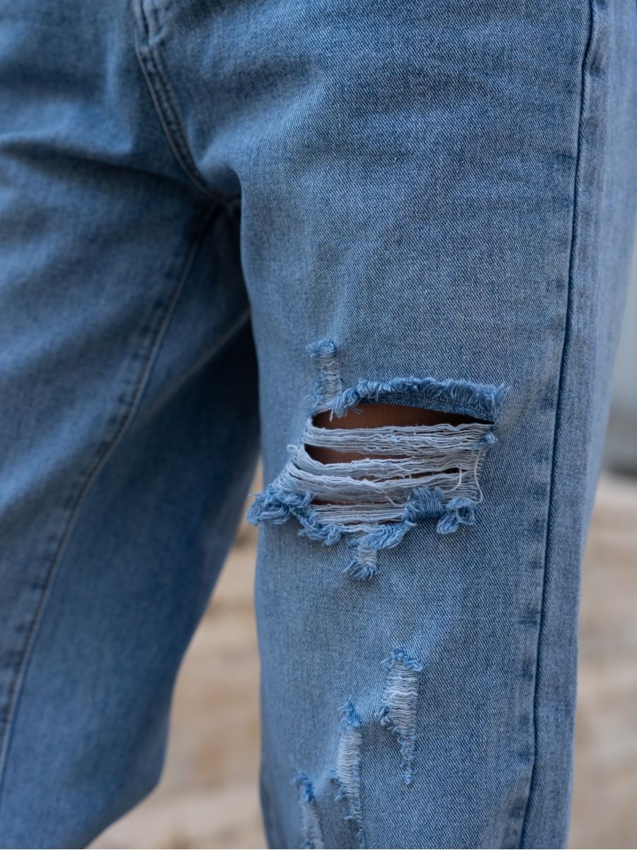 Описание: Джинсы рванные - модель с высокой посадкой, декорированная дырками, потертостями. Прямые, широкие от бедра джинсы с разрезами- актуальный тренд 2023 года. Однотонные демисезонные стильные джинсы женские универсальный предмет гардероба, подходящий для лета, весны. Возможность комбинировать различные стили как классические, так и офисные, поможет создать множество образов. Молодежные брюки с карманами по бокам будут органично сочетаться с лонгсливами, свитерами, толстовками, худи, блузами и футболками. Дополнить весенний лук помогут стильные аксессуары и обувь - кеды, ботинки на плоской подошве или каблуке, кроссовки, туфли. Завышенная талия и комфортная посадка акцентирует внимание на женственных очертаниях фигуры, корректируя визуально несовершенства. Двойная застежка в виде молнии и пуговицы позволяет модели плотно прилегать по бедрам. Универсальный крой с вырезами рассчитан на различные возрастные категории. Палаццо могут надеть подростки, молодые девушки, беременные женщины. Различные модели рассчитаны на худых и полных девушек. Джинсы трубы уникальны своим кроем, подходят для высоких и невысоких. Брюки клеш типа oversize - стильное решение для различных сфер жизни - в школу, для прогулки, романтического свидания, в офис, в дорогу. Свободные джеггинсы - практичный подарок для прекрасного пола на любые праздники. Их можно преподнести маме на день матери, дочери - на день рождения, бабушке - на Рождество, подруге, сестре - на Международный женский день. Скидки и распродажи позволят купить у нас красивые джинсы по выгодным ценам.