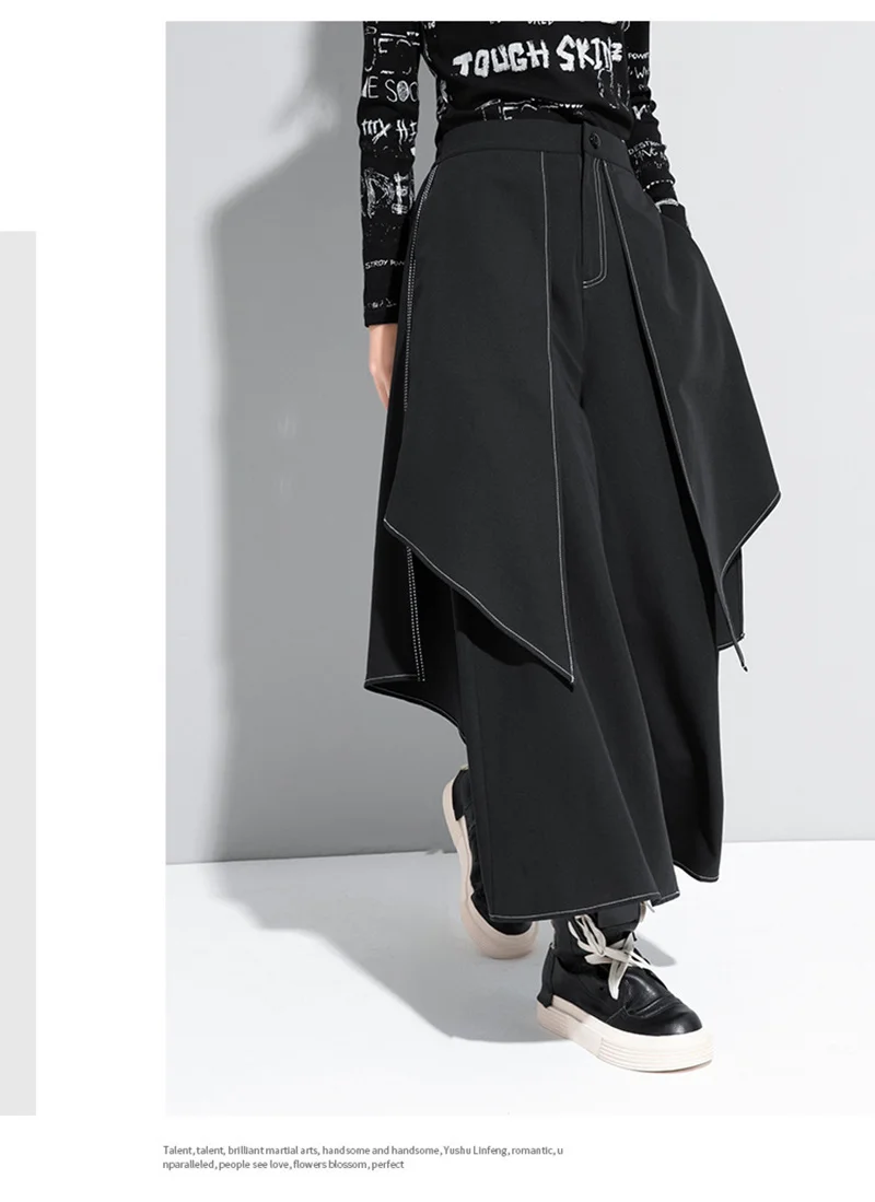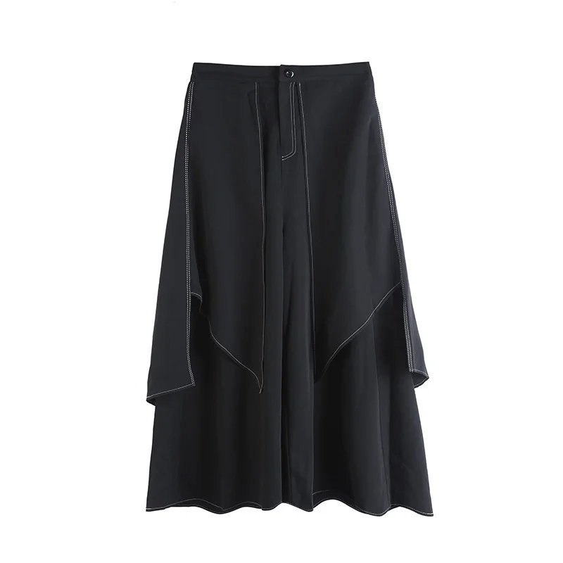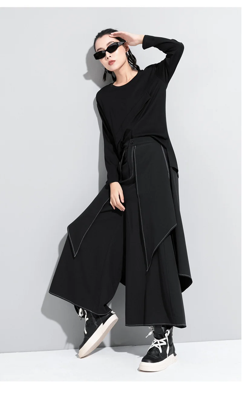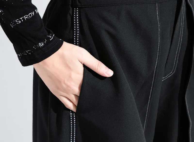 [EAM] Черные льняные брюки с высокой талией, с разрезом, длинные широкие брюки, новые свободные брюки, женские модные брюки, весна-осень 2023, 1DA613