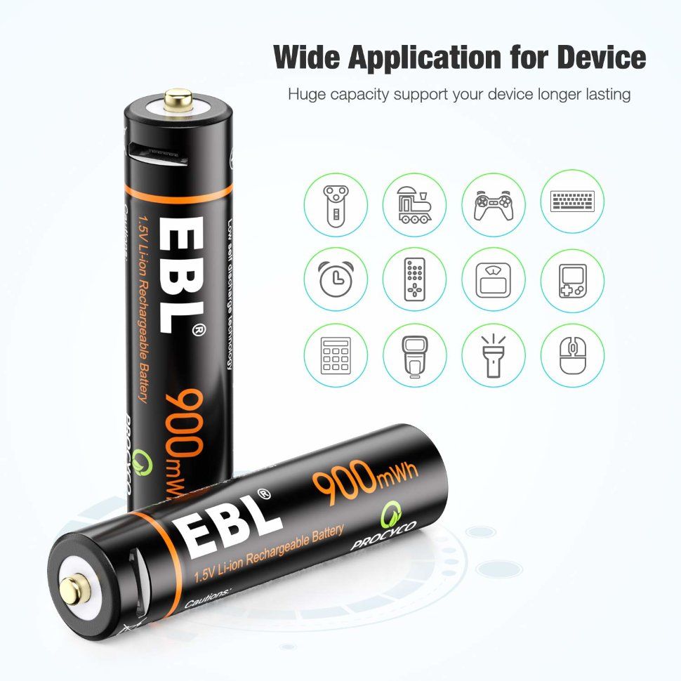 Текст при отключенной в браузере загрузке изображенийБатарейка с зарядкойВыбрать качественные и долгоиграющие батарейки может быть достаточно сложно. Если вы не любите тратить драгоценное время на утомительный поиск оптимального варианта, но при этом хотите найти лучший по соотношению цена/качества вариант, то EBL именно для вас! Универсальные перезаряжаемые батарейки с высокотехнологичной конструкцией, обеспечивающей высокую производительность и долговечность. Модель имеет стандартный типоразмер и подходит к любым гаджетам, от настольных часов до игровых контроллеров. Для комфортного хранения весь комплект поставляется в специальном кейсеТекст при отключенной в браузере загрузке изображенийБыстрая зарядка и встроенный индикаторНовинка поддерживает технологию iQuick, благодаря чему при зарядке 5В/2А процесс займет всего 2 часа (с 0 до 100%). Для еще большего комфорта в корпус батарейки встроен индикатор показывающий готовность. Если горит красный, то аккумулятор пополняется, а синий означает что он полон