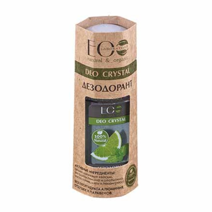 Описание: EO laboratorie Дезодорант для тела DEO CRYSTAL "Лимон и апельсин" – это лучшее косметическое средство, которое могли придумать специалисты бьюти сферы. Ведь запах пота подмышек доставляет дискомфорт окружающим и самому человеку, у кого произошло потоотделение. Но такую проблему легко предотвратит наш твердый стик. Шариковые дезодоранты лучше справляются с потоотделением, чем аэрозоли или спрей. Наши дезодоранты это 100% натуральное природное гипоаллергенное средство по уходу за кожей без запаха, не содержит парабенов и хлоргидрата алюминия. Дезик безопасен для любого типа женской, мужской и детской кожи; сухой, жирной, комбинированной; чувствительной, а также можно использовать даже после эпиляции. Уходовое средство маскирует, смягчает или полностью нейтрализует неприятный запах. Содержит дезинфицирующие компоненты, которые уничтожают бактерии и продукты их жизнедеятельности. Антиперспирант изготовлен на основе алюмокалиевых квасцов, эфирных масел и растительных экстрактов. Эко косметика содержит в своем составе алюмокалиевые квасцы — это природный минерал, оказывающий антисептическое и противовоспалительное действие. Алюмокалиевые квасцы абсорбируют лишнюю влагу, а дезинфицирующие свойства избавляют от причины неприятного запаха, снижая секрецию потовых и сальных желез. В отличие от хлоргидрата алюминия, алюмокалиевые квасцы не оказывают вредного воздействия на кожу, не стягивают поры, их воздействие безопасно для здоровья. Хлоргидрат алюминия может быть причиной возникновения многих заболеваний, в том числе провоцировать рак молочной железы.
