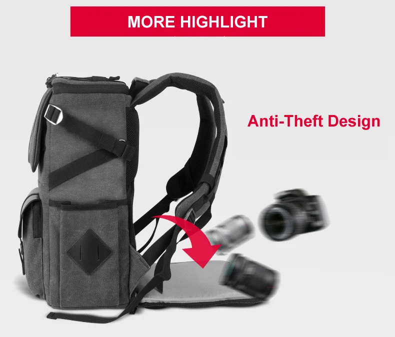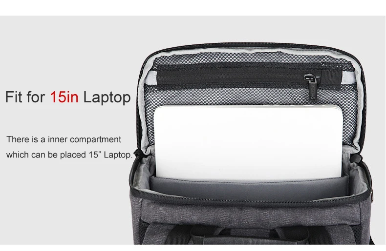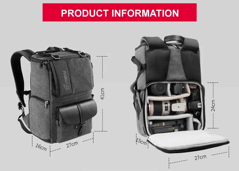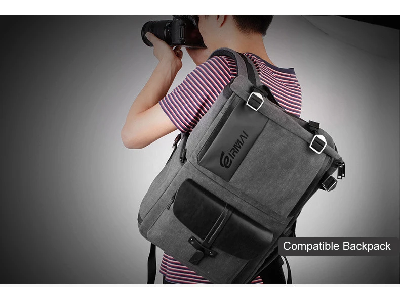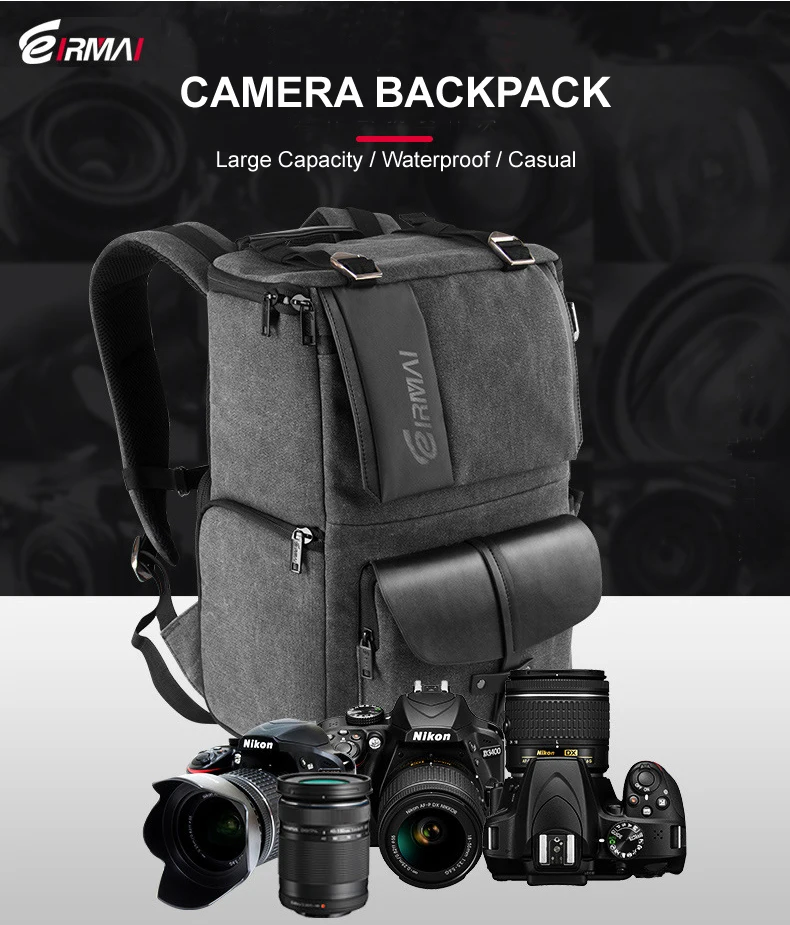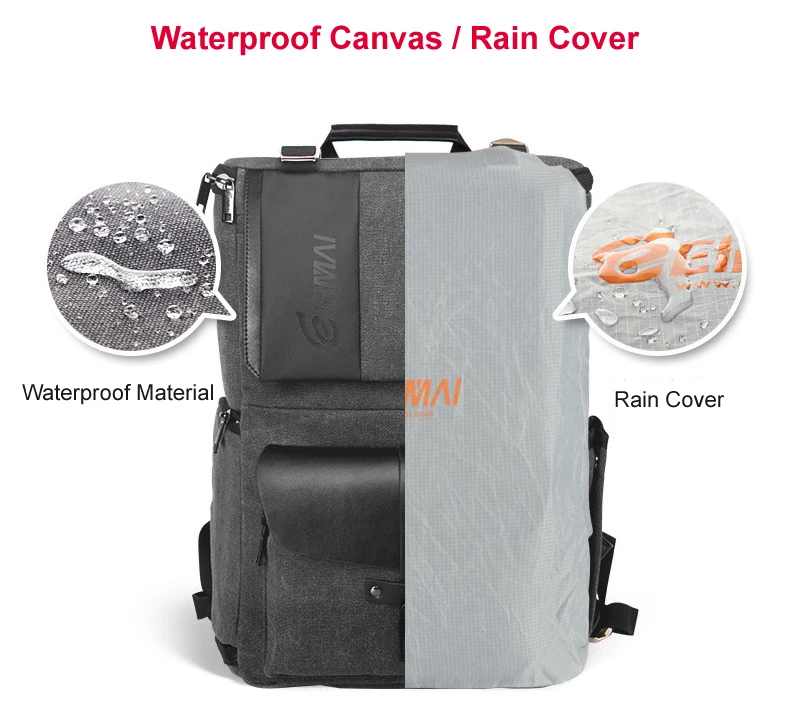 Eirmai серый холщовый вместительный рюкзак на плечо для видеокамеры Водонепроницаемый с чехлом от дождя подходит для 15-дюймового ноутбука для DSLR фотодрона