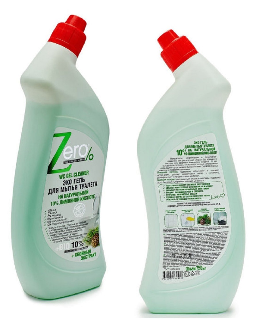 Эко гель для мытья туалета ZERO BIO с лимонной кислотой и хвойным экстрактом 750 мл