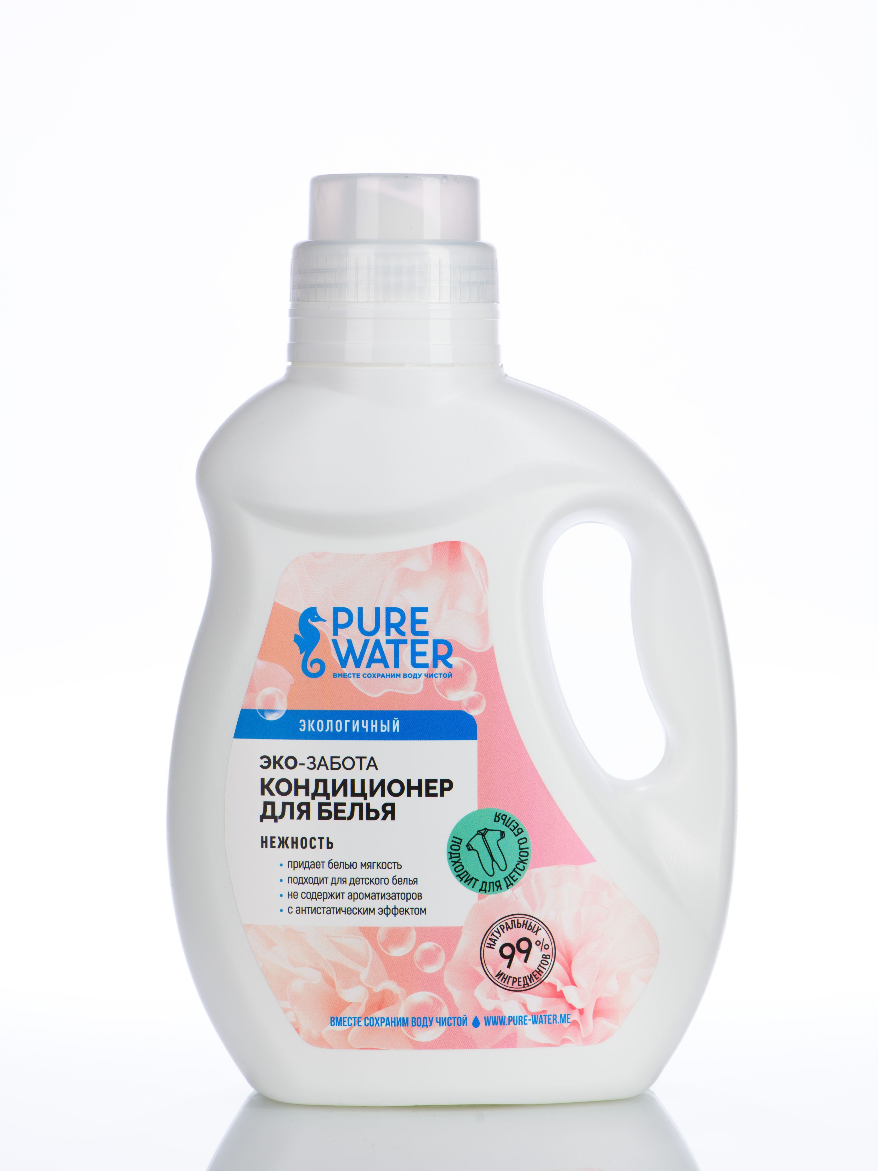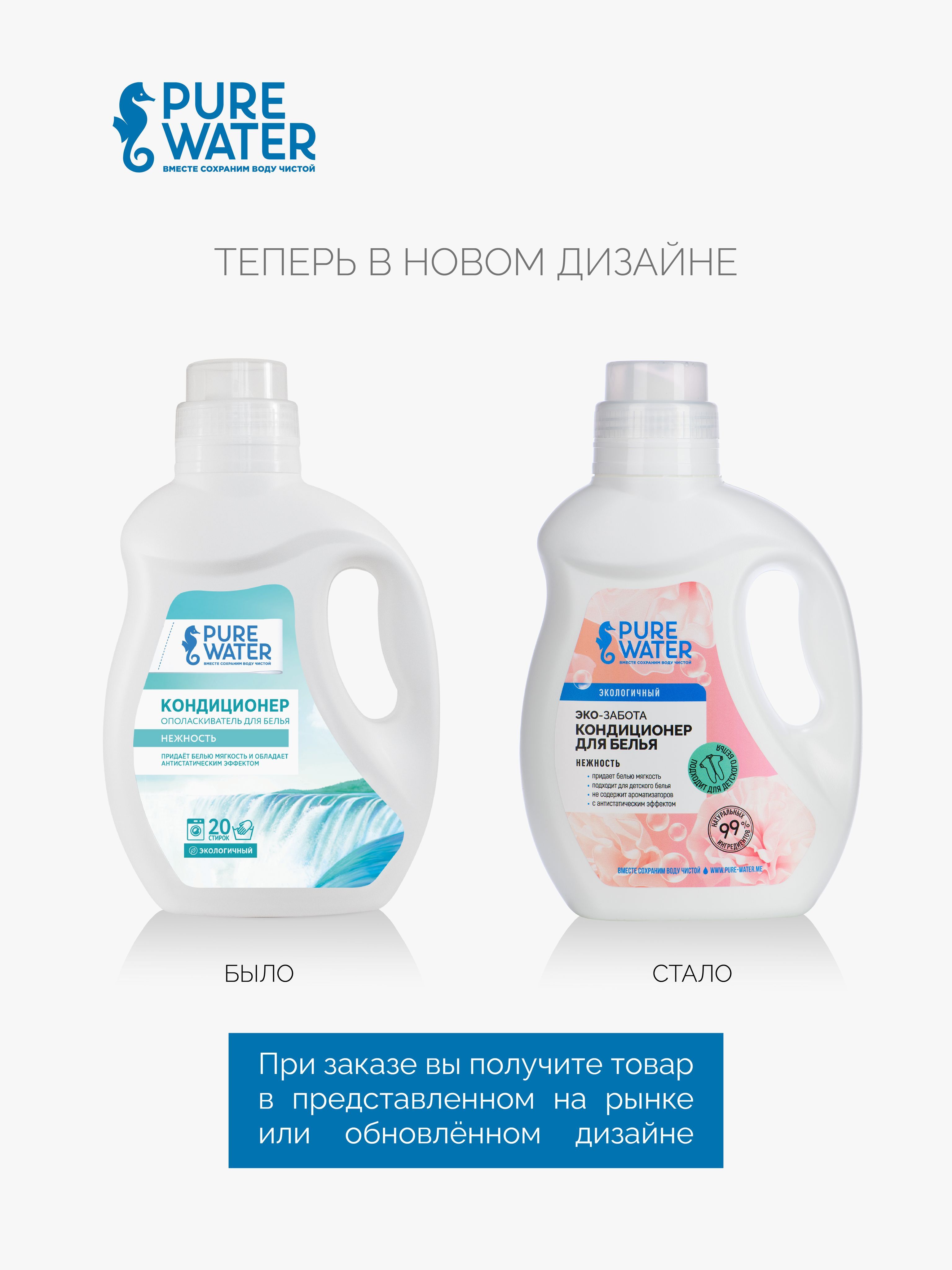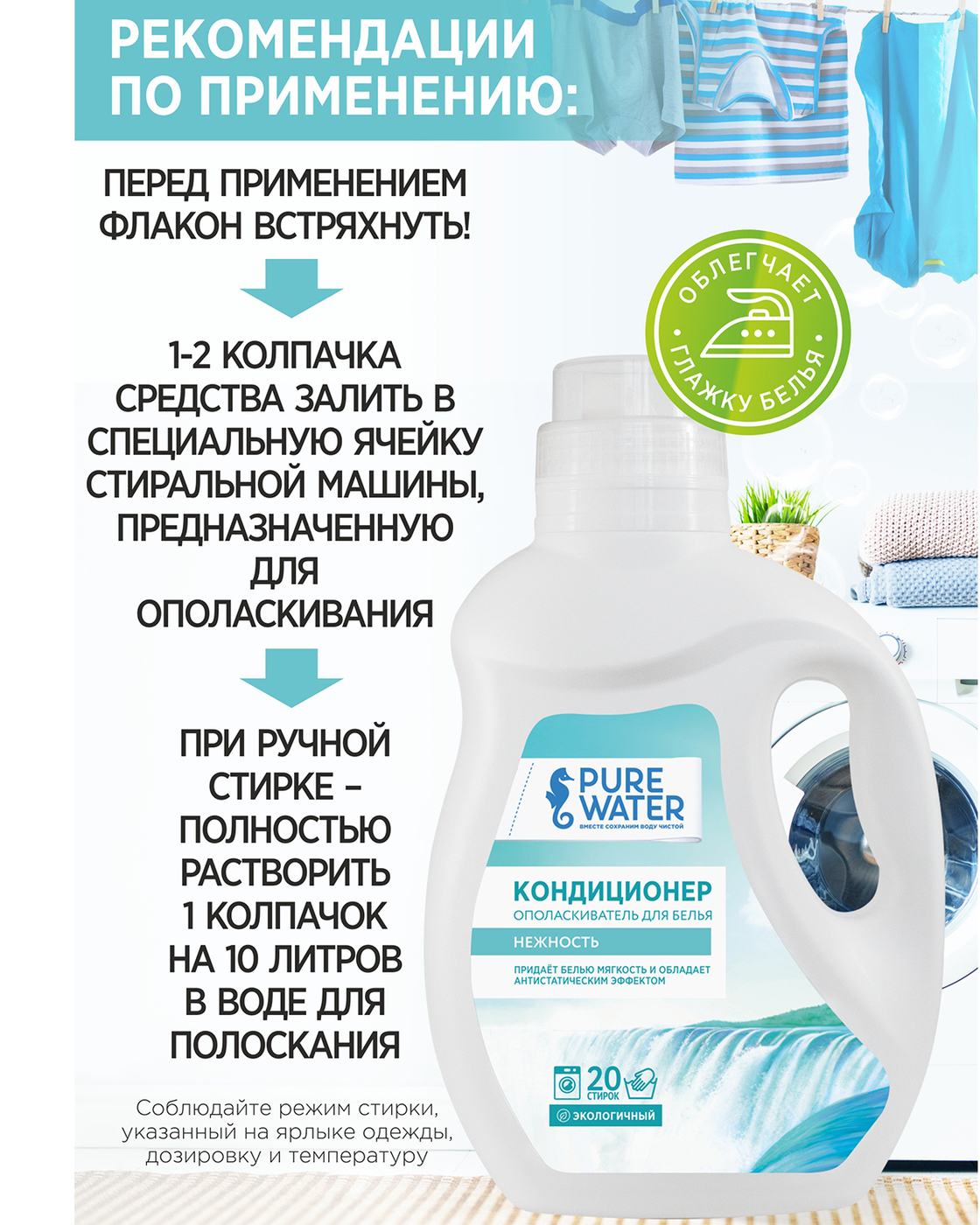 Эко Кондиционер для белья Нежность Pure Water 1000 мл, натуральный гипоаллергенный био состав.