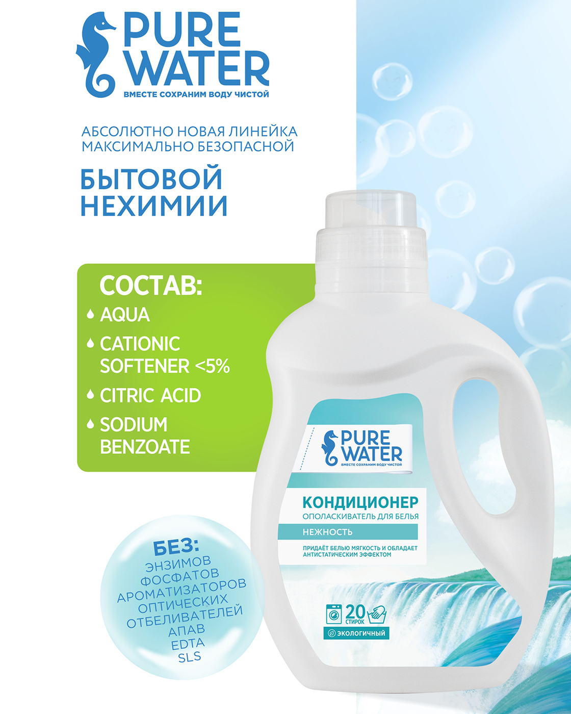 Сохраняя качество одежды при стирке с экологичными средствами Pure Water, Вы сохраняете и окружающую среду. Спасибо, что Вы с нами!