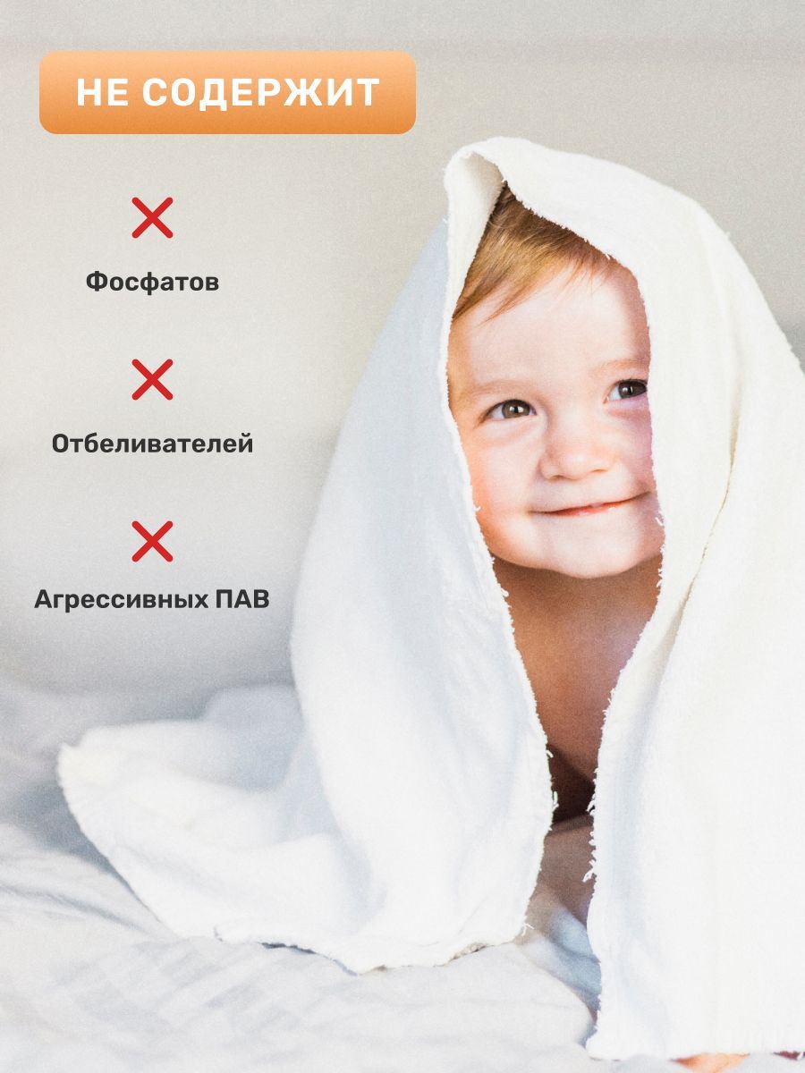 Не содержит: фосфатов, отбеливателей, агрессивных ПАВ.