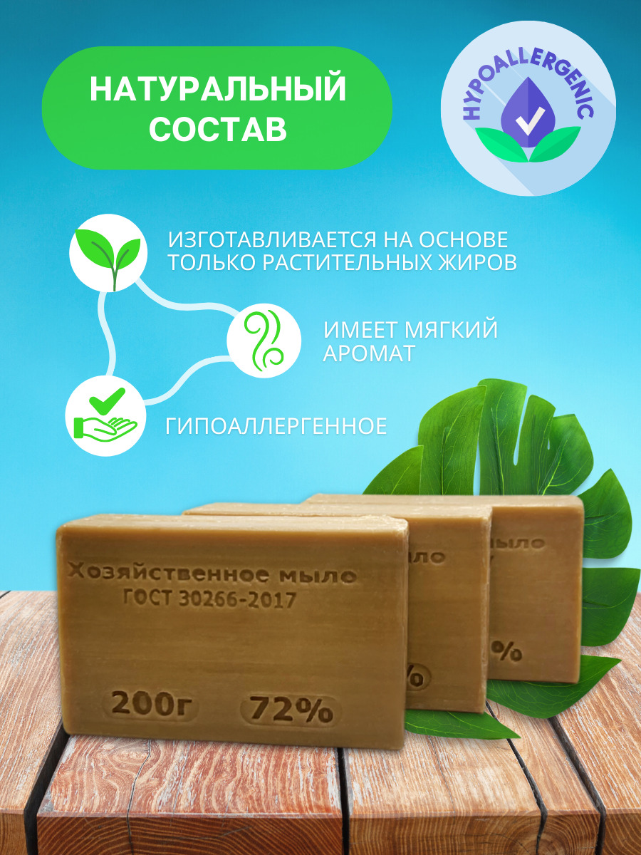 Описание: Хозяйственное мыло на натуральной основе - 3 штуки в упакове.