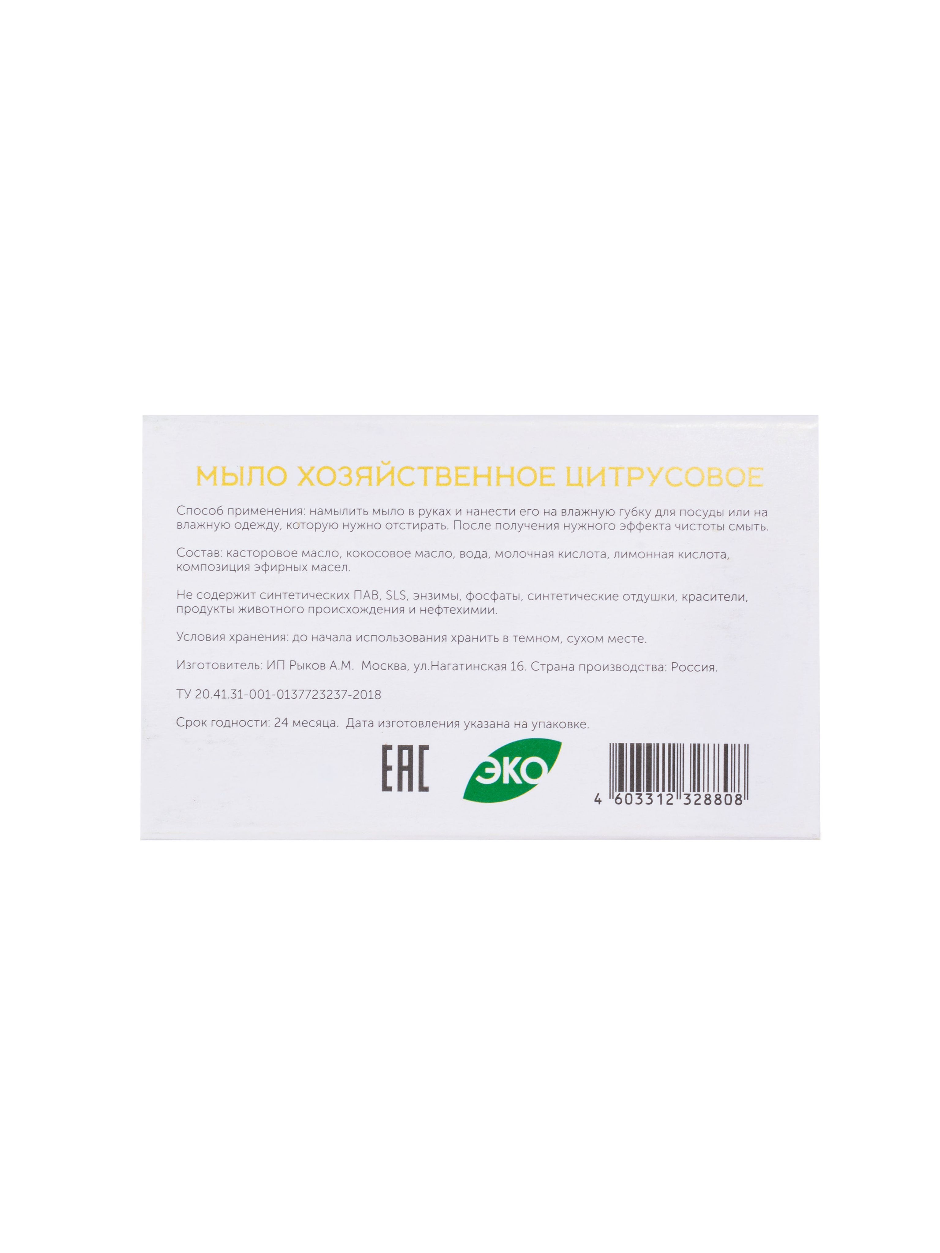 Эко мыло Хозяйственное Цитрусовое для стирки мойки мытья посуды уборки поверхностей ручной работы 110г без отдушек и сульфатов