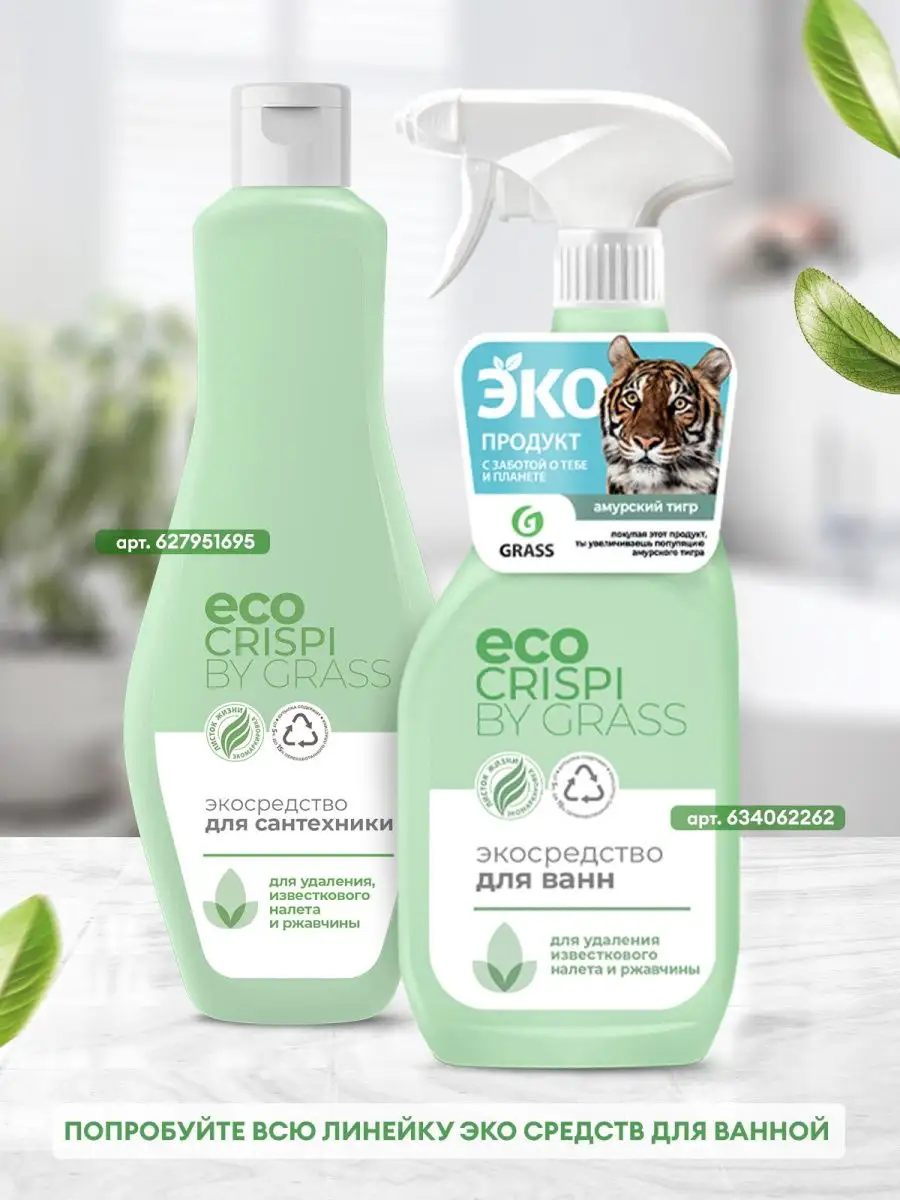 Описание: Средство для ванн и сантехники Crispi by Grass 600 мл - универсальное ЭКО средство для уборки , подходящее для ежедневной уборки всех видов поверхностей в ванных комнатах и санузлах. Моющее средство Криспи от Грасс устраняет известковый налет, ржавчину, камень и минеральные загрязнения даже в холодной и жесткой воде. Может использоваться как средство для кухни. Смывается на 100% и не остается на поверхностях. Обильная пена позволяет эффективно удалять известковый налет, подтеки ржавчины и солевые отложения за короткое время. Входящая в состав специально подобранная ароматизирующая добавка наполнит ванную комнату приятным ароматом. Не содержит фосфатов, фосфонатов, парабенов и хлора. На основе пищевой органической кислоты и эффективных биоразлагаемых тензидов. Устраняет неприятные запахи. Безопасно для акриловых ванн. Безопасно для септиков. Попробуйте всю линейку универсальных чистящих средств: средство для мытья окон и зеркал, средство для сантехники, средство для ванной и унитаза, из которой можно собрать отличный набор для уборки. Компания GRASS запустила масштабную экологическую программу в партнерстве с крупнейшими заповедниками России. Выбрано шесть видов животных: амурский тигр, сайгак, снежный барс, зубр, северный олень и бурые медвежата. Покупая Eco Crispi by GRASS, вы поддерживаете программу помощи редких видов животных.
