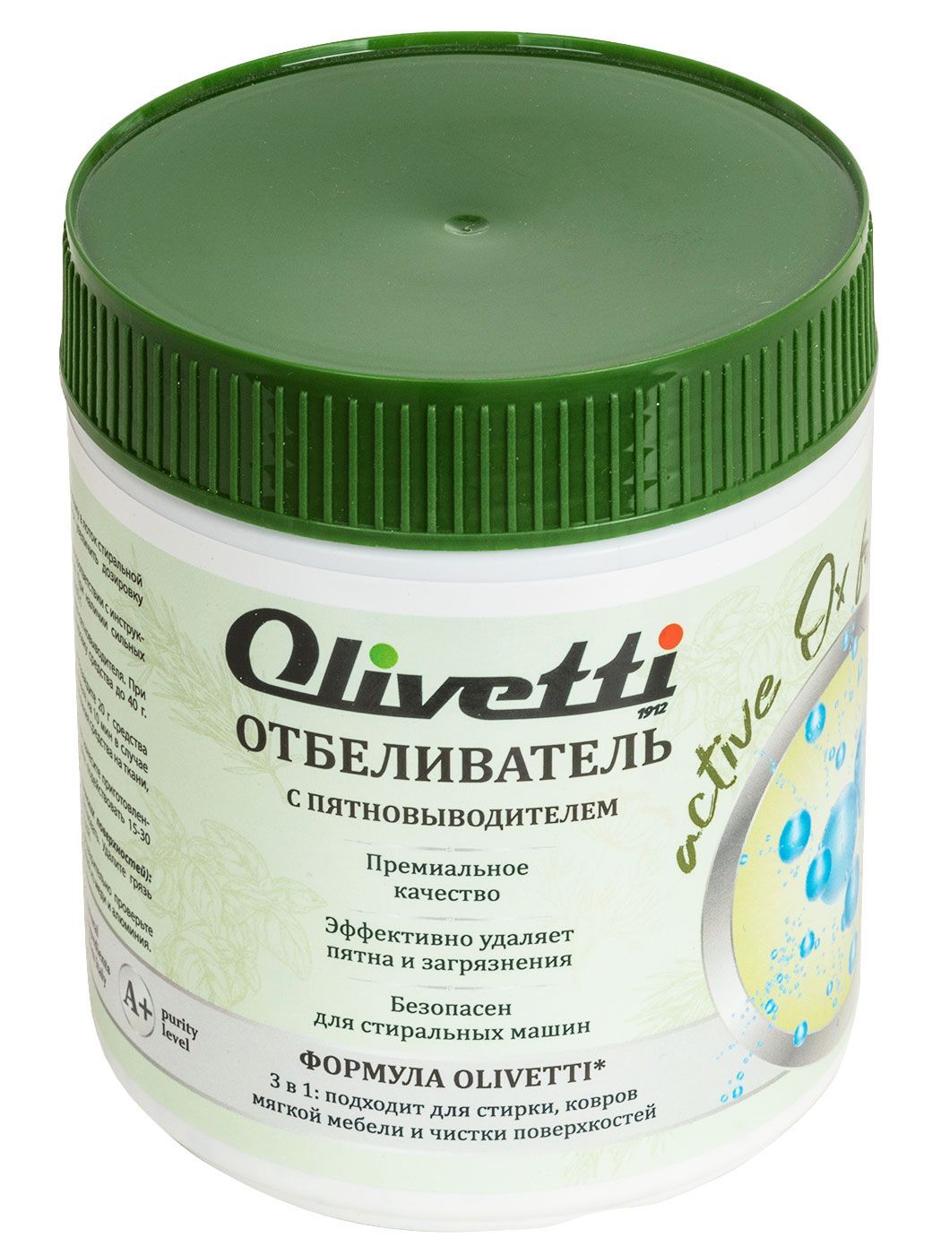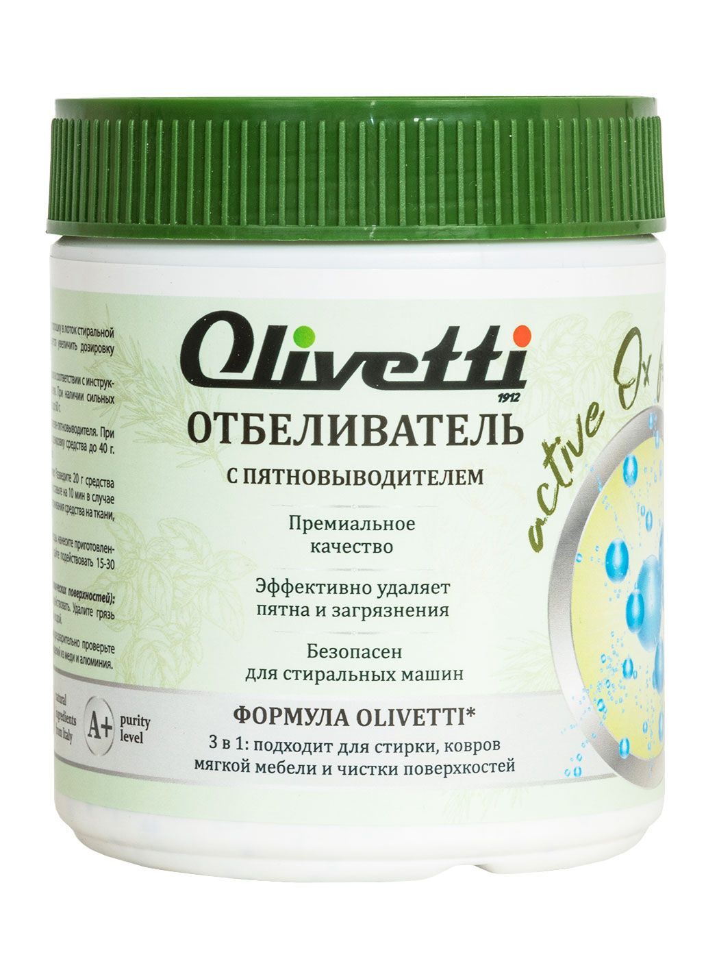 Экологичный отбеливатель-пятновыводитель OLIVETTI PREMIUM 3 в 1 для стирки, очистки ковров, мягкой мебели и чистки загрязненных поверхностей, 500 г