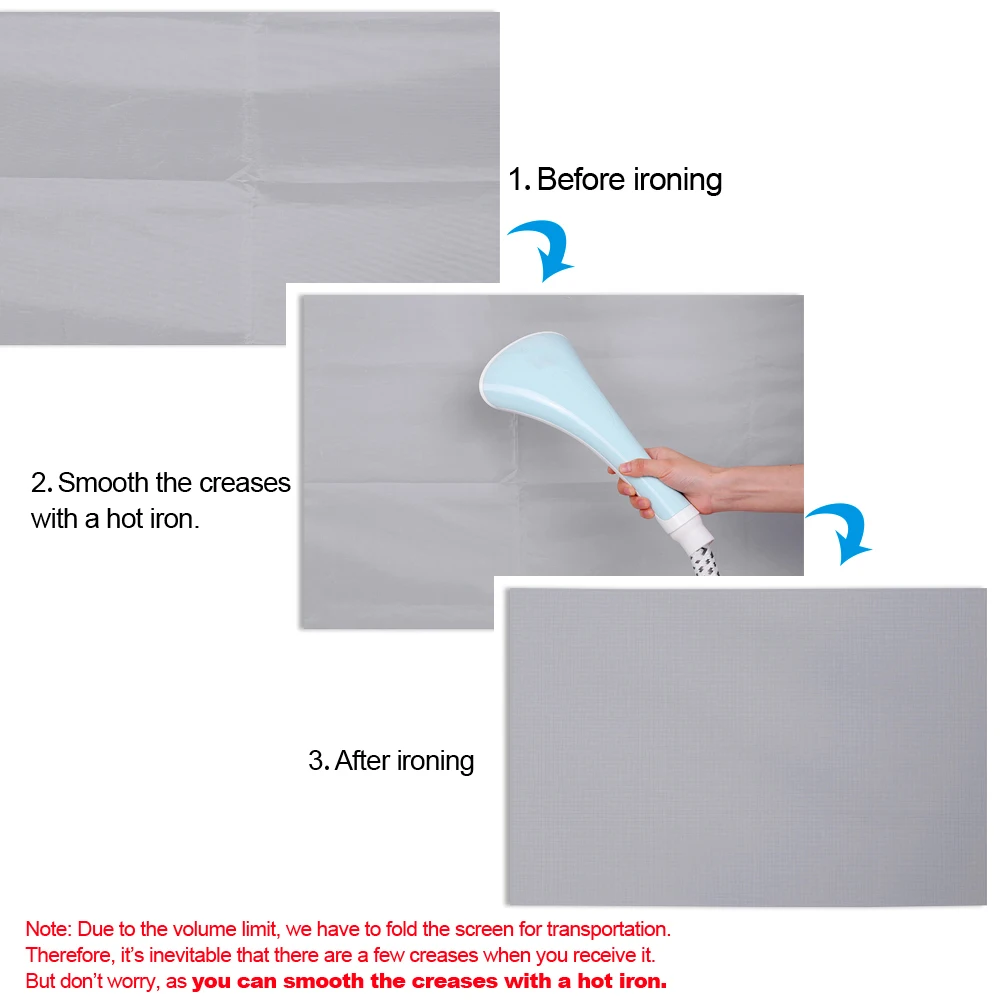 Серый экран эффектно улучшает контраст проекции. Слой покрытия с частицами шарика увеличивает яркость. Не нужно закрывать двери и окна в течение дня, чтобы получить отличную проекцию.