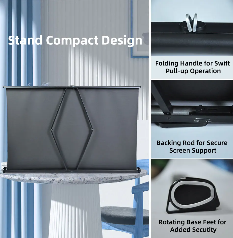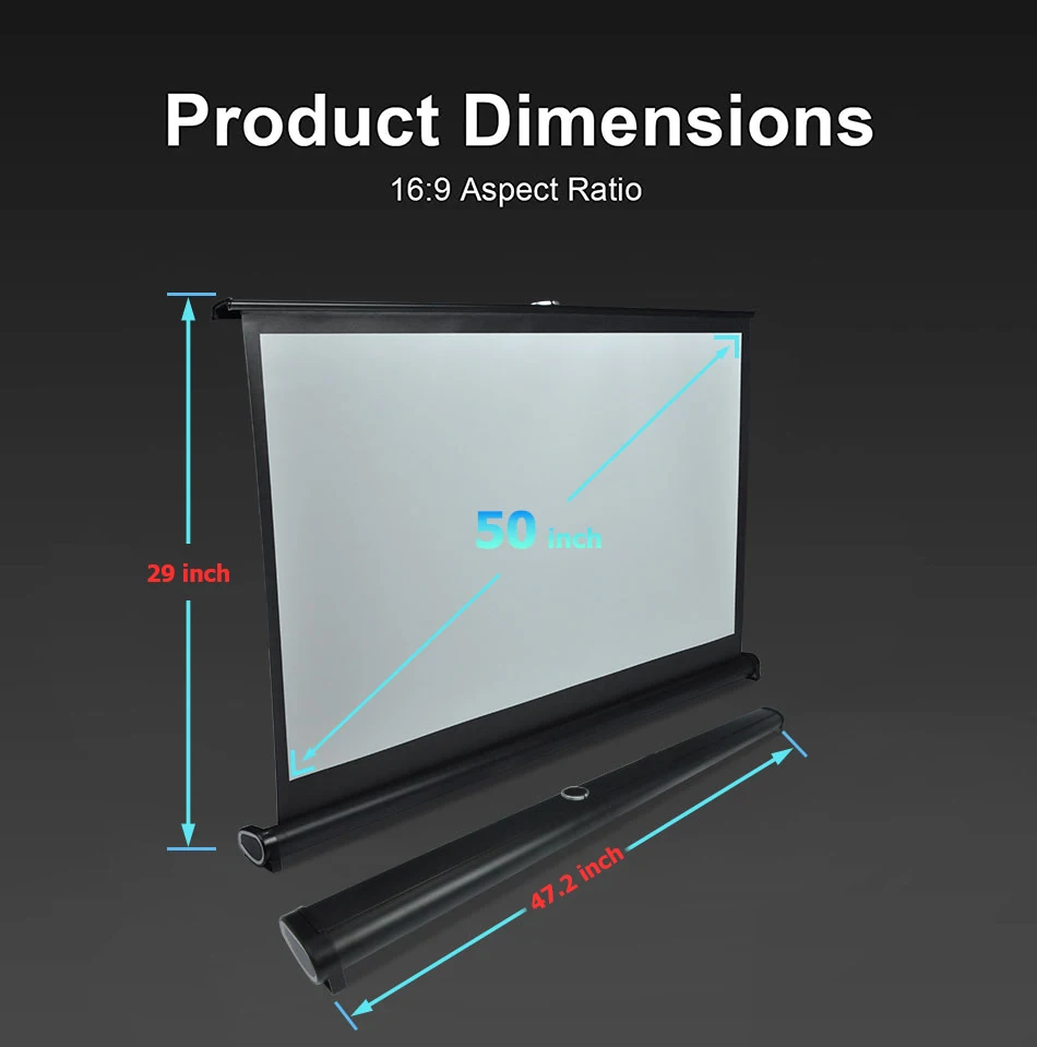 50-дюймовый портативный экран проектора HD 16:9 Pull Up Настольный проекционный экран Складная подставка для кемпинга на открытом воздухе
