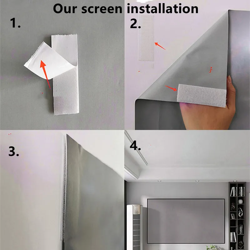 4: Мы предлагаем вам установить его на раму (из дерева, не входит в комплект). Если вы хотите проецировать размер 100 дюймов, рекомендуется покупать экран размером более 100 дюймов, потому что в процессе резки будут потери