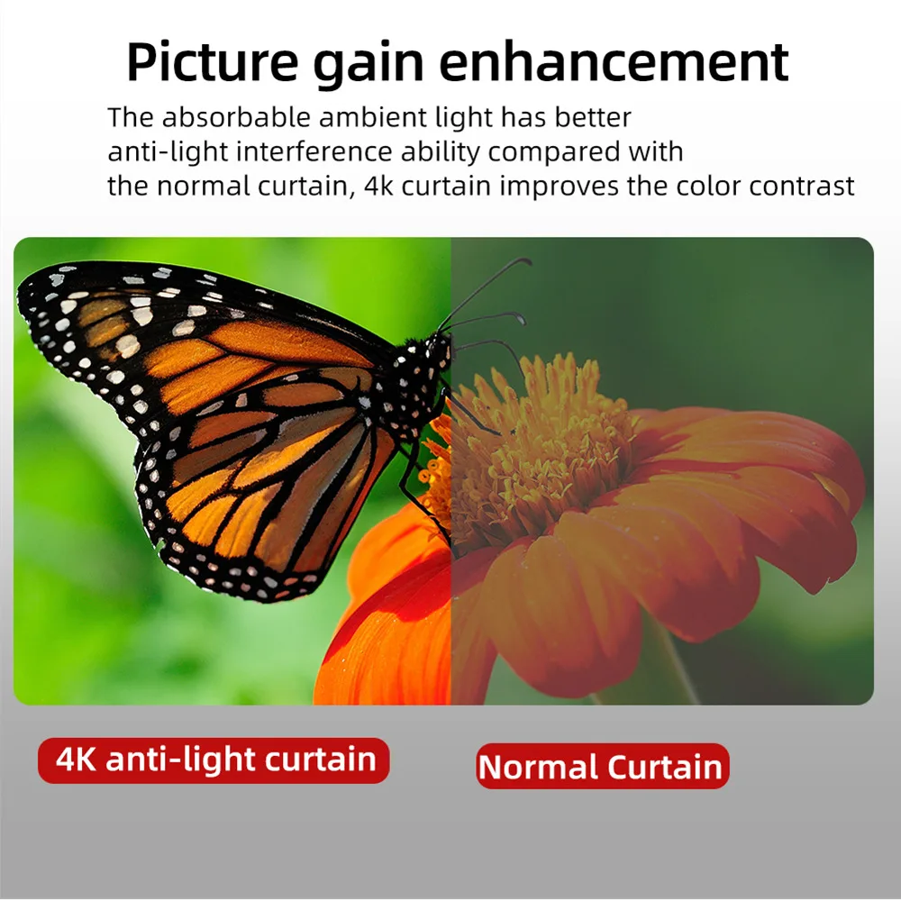 2. Этот экран изготовлен из волокнистого материала высокой плотности, без запаха и без вреда для человеческого тела и здоровья. Металлический слой и частицы шарика в этом экране увеличат яркость. Дайте вам лучший опыт для просмотра.