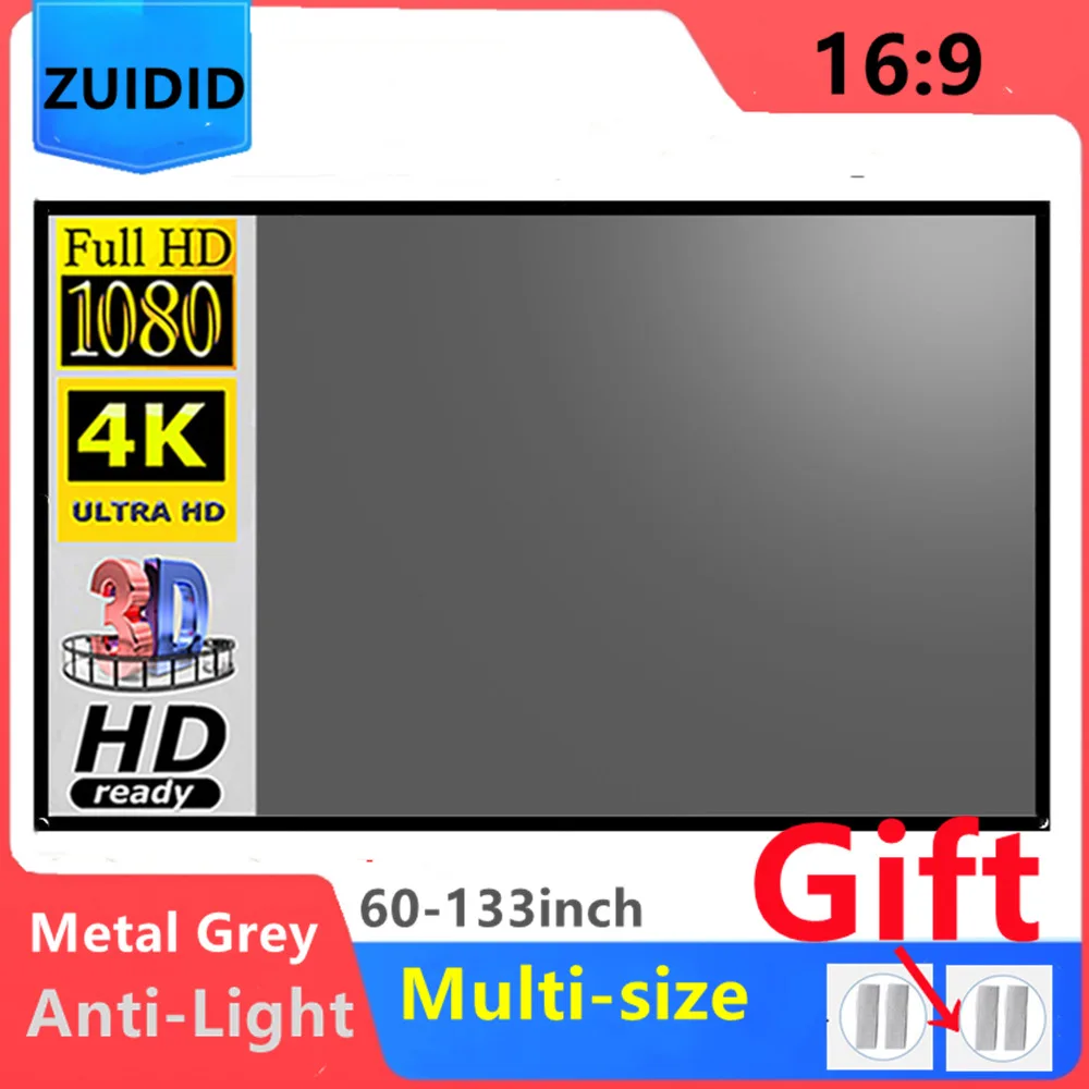 Экран проектора для дома 16:9 портативный HD 60 72 84 100 106 120 130 133 дюймов отражающие экраны для проекции из холста