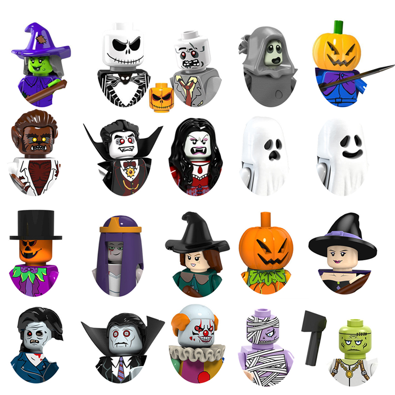 Экшн-фигурка клоуна из серии ужасов на Хэллоуин, зомби, вампира, строительные блоки, модель призрака, фигурки, голова, игрушки для детей, подарок