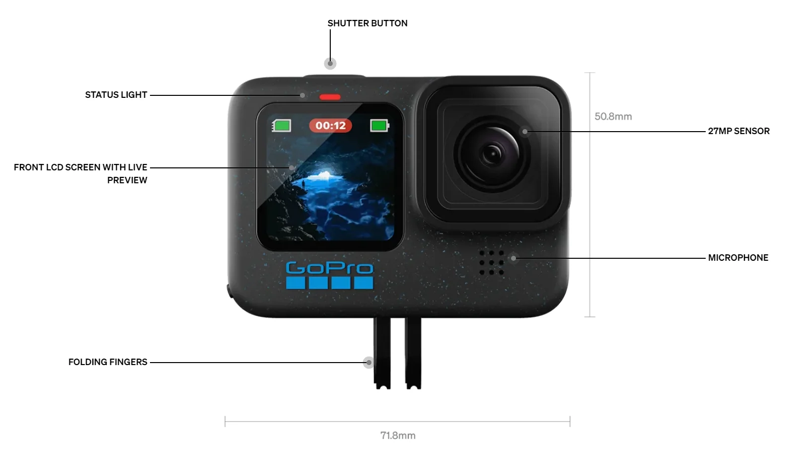 Благодаря улучшенному управлению питанием HERO12 Black обеспечивает в 2 раза более длительную непрерывную запись при 5, 3 К60 (70 минут) плюс более 1,5 часов при 5, 3 к30 и более 2,5 часов непрерывной записи при 1080 пикселей 30.²